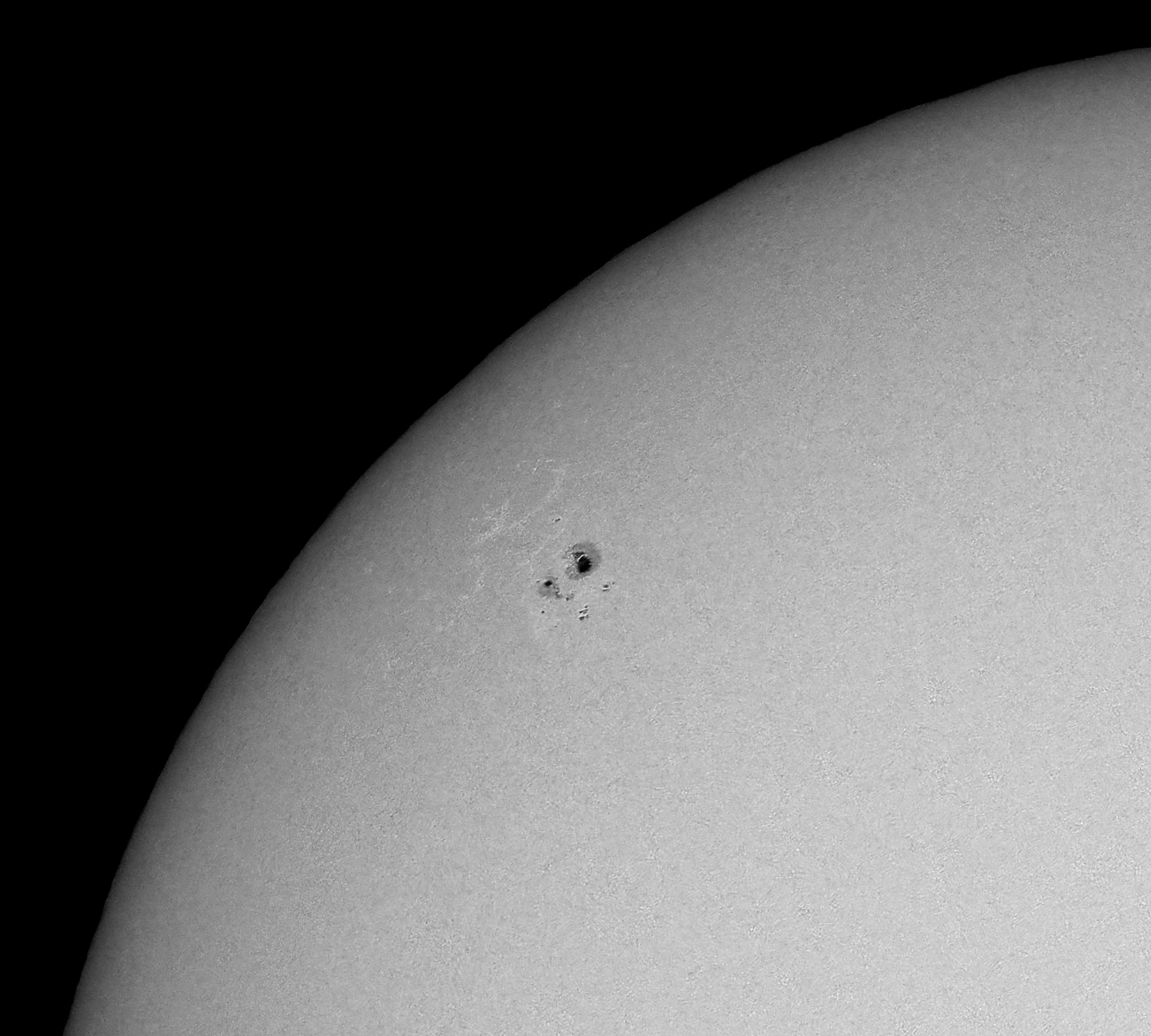 Endlich auch wieder eine schöne aktive Region auf der nördlichen Hemisphäre der Sonne. Es ist die AR 12822 mit auffälligen Fackelgebieten. Besonders die sehr helle Lichtbrücke im Sonnenfleck fällt auf. Trotz sehr unruhiger Luft konnte ein Foto doch überzeugen, dank elektronischem Verschluss bei 1/16000 sec.