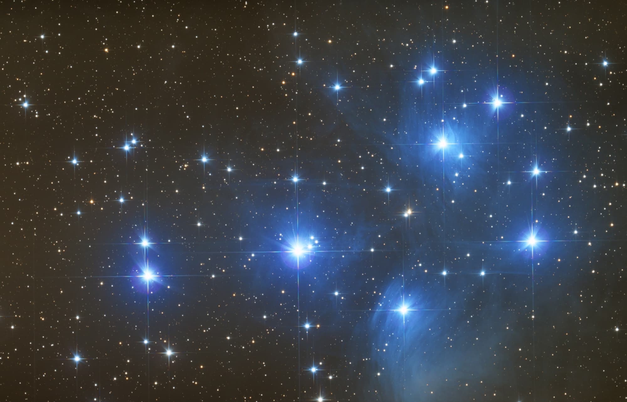 Die Plejaden … eines der beliebtesten Winterobjekte, auch schon mit freiem Auge zu erkennen. Ein offener Sternhaufen im Sternbild Stier, hat irgendwie eine gewisse optische Ähnlichkeit mit der Figur des großen/kleinen Wagens, finde ich …