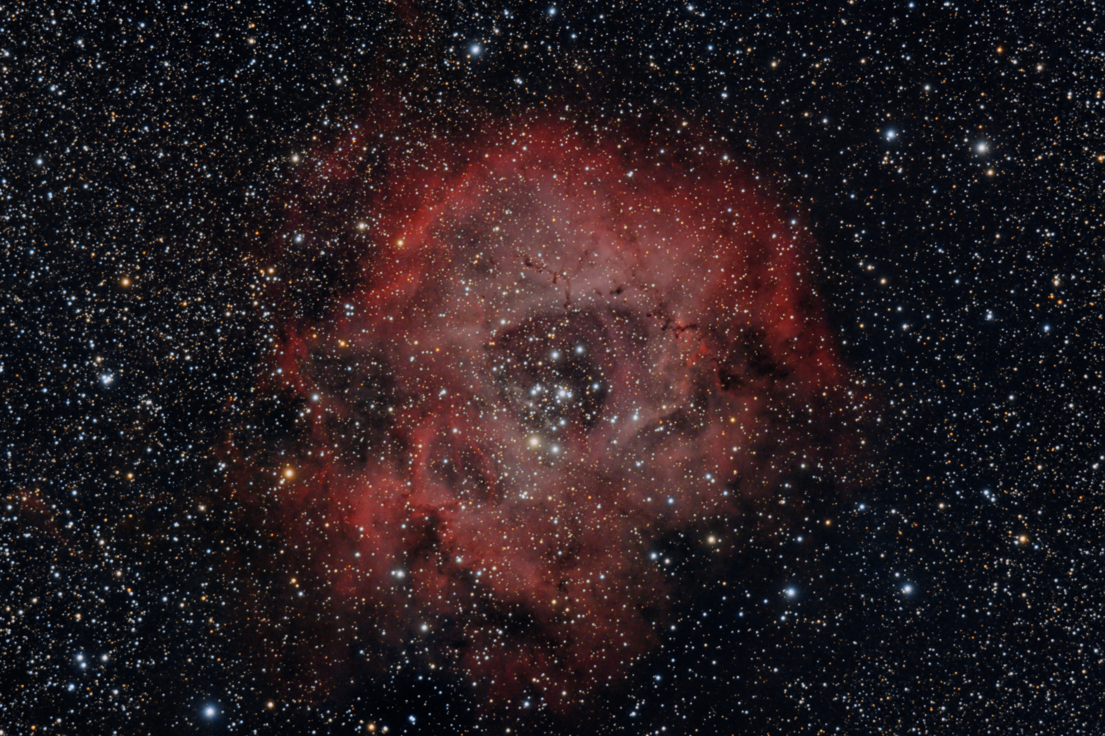 Der Rosettennebel im Sternbild Einhorn gehört zu den schönsten galaktischen Nebeln des Himmels. Seinen Namen bekam der Nebel durch sein Aussehen, das an den Blütenkelch einer Rose erinnert. Im Zentrum des Objekts befindet sich der offene Sternhaufen NGC 2244, eine Ansammlung von jungen, leuchtkräftigen Sternen. http://www.licht-stimmungen.de/