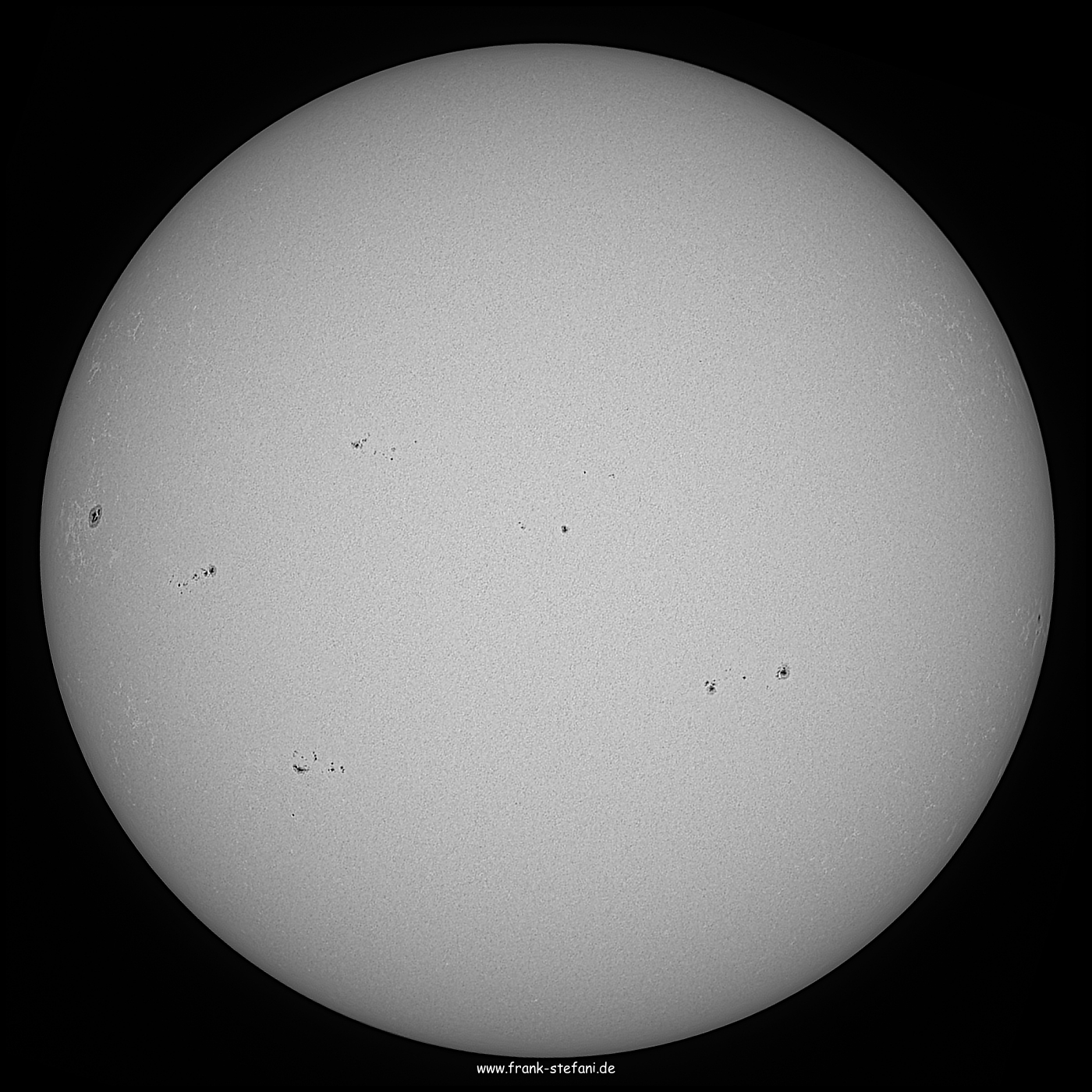 Zur Zeit gibt es nicht weniger als 14 aktive Regionen, die im Wesentlichen in Äquatornähe zahlreiche kleine Fleckengruppen hervorbringen. Interessant ist weiterhin deren chaotische Anordnung und Erscheinung: Zahllose »Sprenkel« sind zu beobachten und die Penumbrae der wenigen größeren Flecke sind überwiegend inhomogen um ihr schwarzes Zentrum verteilt. Gleichzeitig zeigen sich dort aber auch mehrere Lichtbrücken, die besonders hell hervortreten.