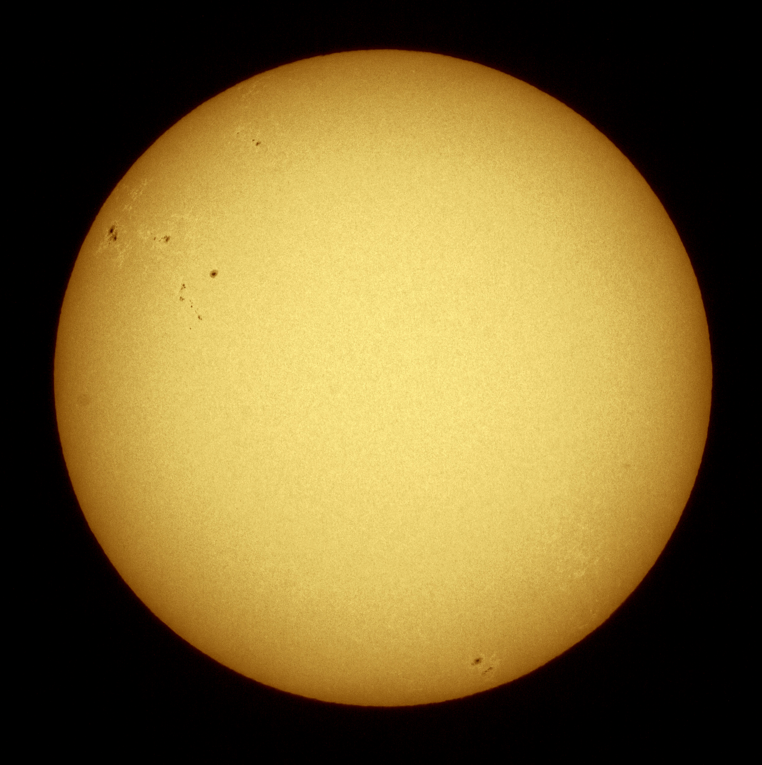 Am 16.06.2013 waren eine Vielzahl von Sonnenflecken zu beobachten. In der Nachbearbeitung habe ich versucht, der Sonne eine natürliche Farbe zu geben.