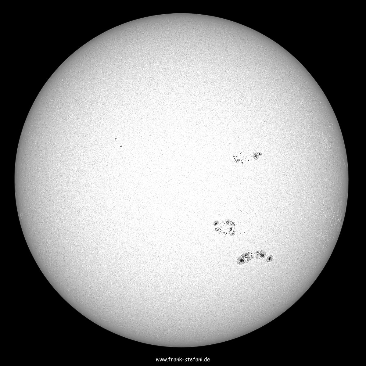 Vielleicht freut sich die Sonne, dass wir auf der Erde in Kürze die Sommersonnenwende 2024 feiern. In vielen Kulten und Kulturen unserer Spezies ist dieses Ereignis ein Anlass für Feste - da knallen schon mal die Sektkorken und es perlt und sprudelt in den Gläsern. Auf der südlichen Hemisphäre der Sonnenoberfläche beobachten wir seit einigen Tagen ebenfalls ein regelrechtes »Sprudeln«: Die vor kurzem visuell noch unscheinbare aktive Region AR13713 - gleich links oberhalb der gegenwärtig größten und schon länger beeindruckend detailreichen Region AR 13712 - begeistert durch ständig neu entstehende und sich schnell verändernde kleine Sonnenflecke - es sprudelt! Sehr gut ist diese Entwicklung über einige Tage auf https://solarmonitor.org/ in allen möglichen Spektren und Frequenzen zu verfolgen. Visuell am Dobson - natürlich mit unbedingt notwendigem Sonnenfilter - ist es tatsächlich ein Fest für die Augen, diese Veränderungen live zu verfolgen. Tipp: Das heutige Bild mit meinem Bild vom 16. Juni 2024 vergleichen https://www.spektrum.de/alias/wunder-des-weltalls/die-sonne-am-16-juni-2024-praechtige-ar-13712/2219805