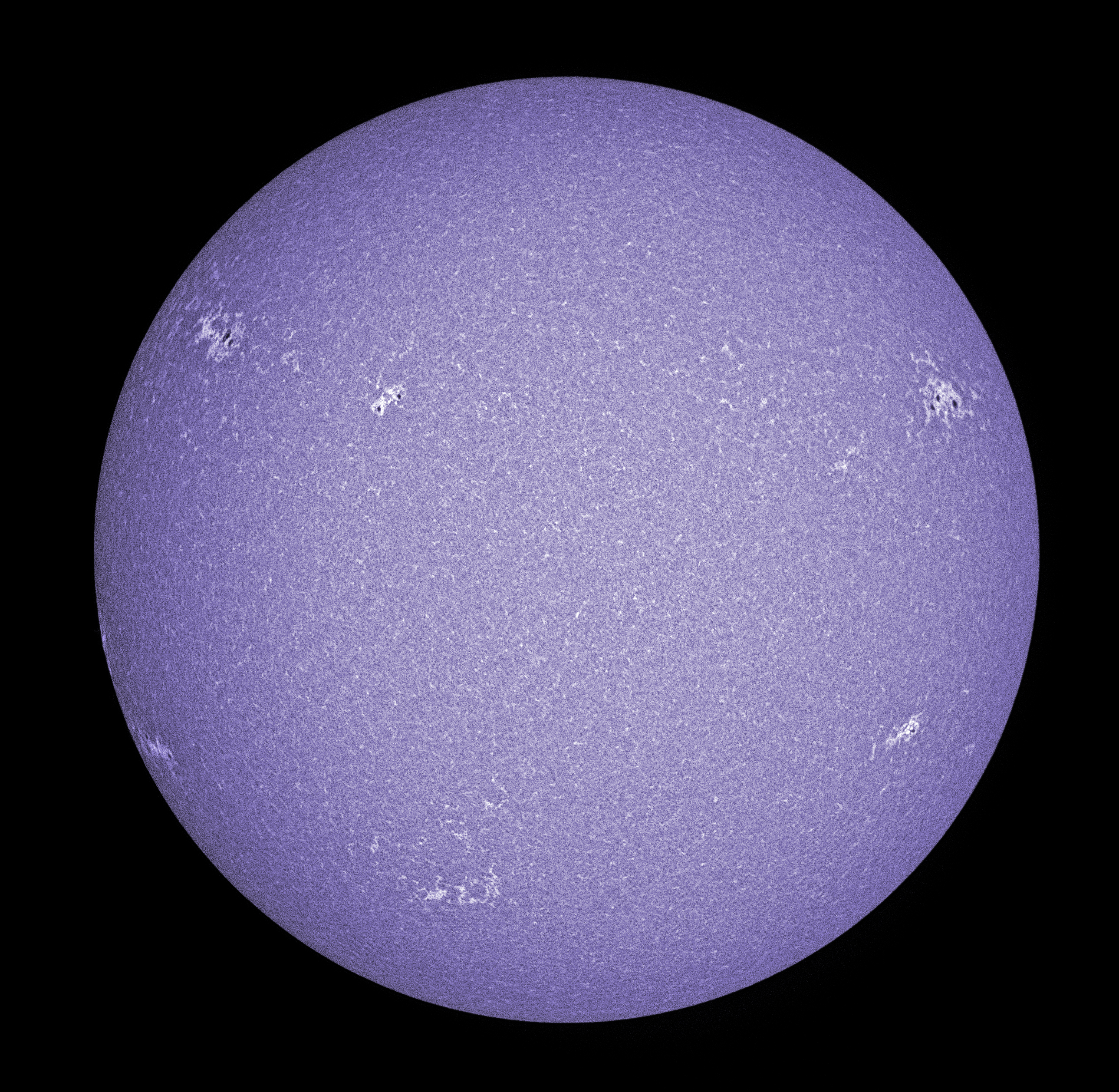 Auf der Sonne tummeln sich nördlich und südlich fünf! Sonnenfleckengruppen. Aufgenommen im Licht der K-Linie des Kalziums.