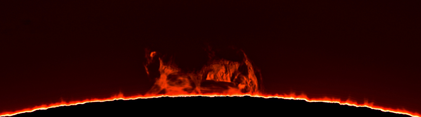 Nach langer Durststrecke mal wieder eine schöne Protuberanz. Das Seeing spielte für einmal mit, jedenfalls gegen 14 Uhr. Um 16:30 Uhr starke Turbulenzen.