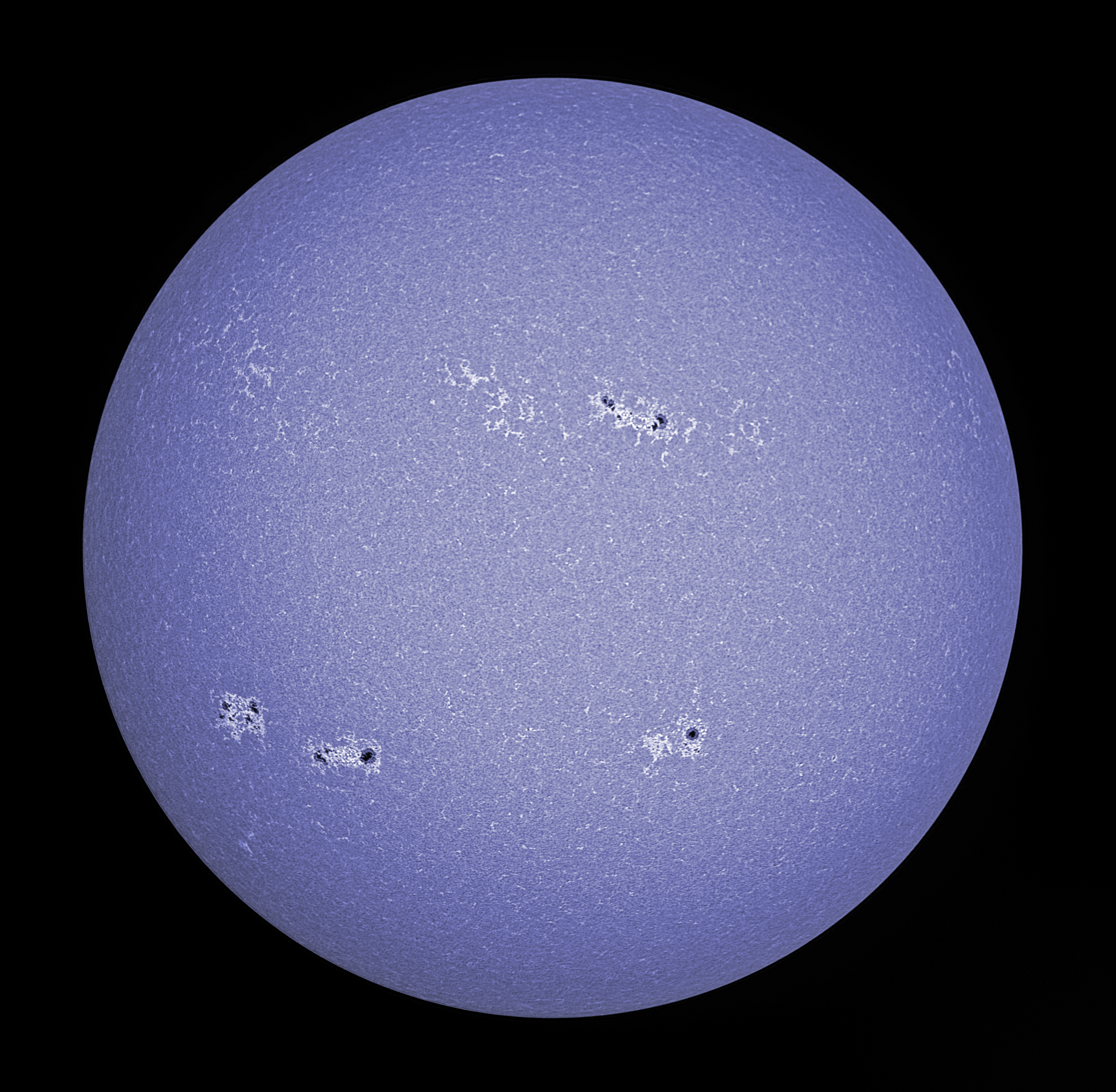Die Sonne im Licht der K-Linie des Kalziums. Es tut sich endlich was auf der Sonne. Die Flecken werden zahlreicher und größer.