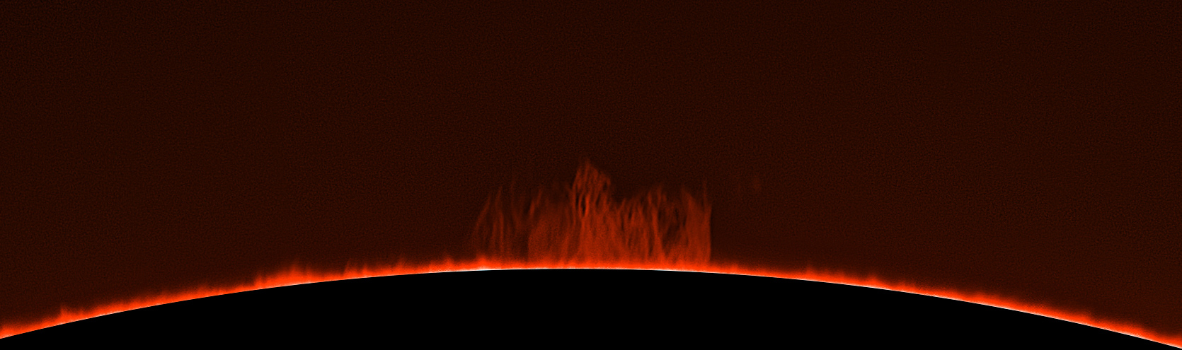 Selten zu sehen: Protuberanzen und Spikulen stehen genau senkrecht zum Sonnenrand.