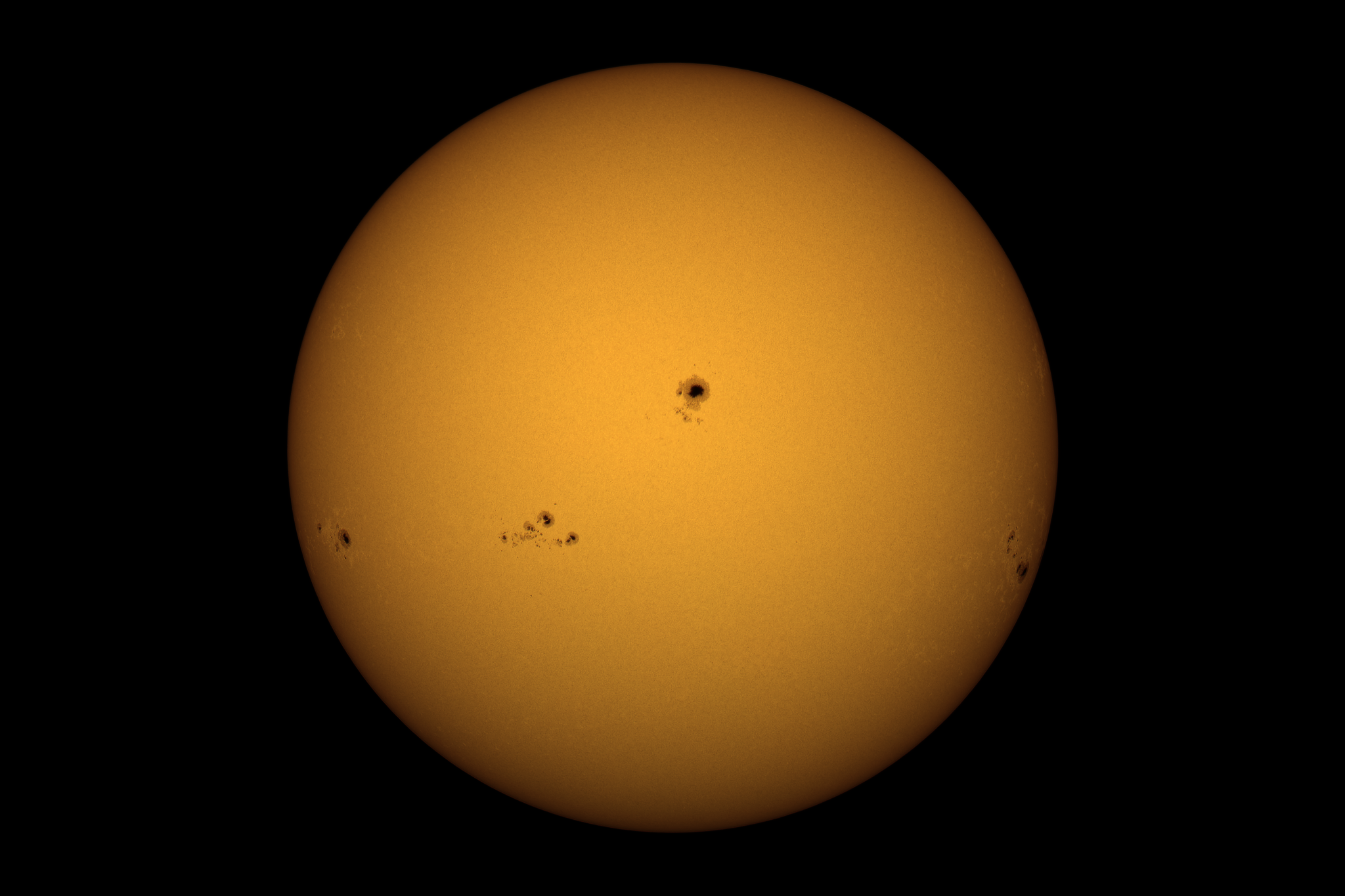 Nachdem es in der letzten Nacht mal wieder nicht (dank des miesen Wetters) mit der Aurora funktioniert hat hier, gab es heute endlich freien Blick zur Sonne mit der fast noch auf dem Zentralmeridian stehenden größten Gruppe AR 3848.
