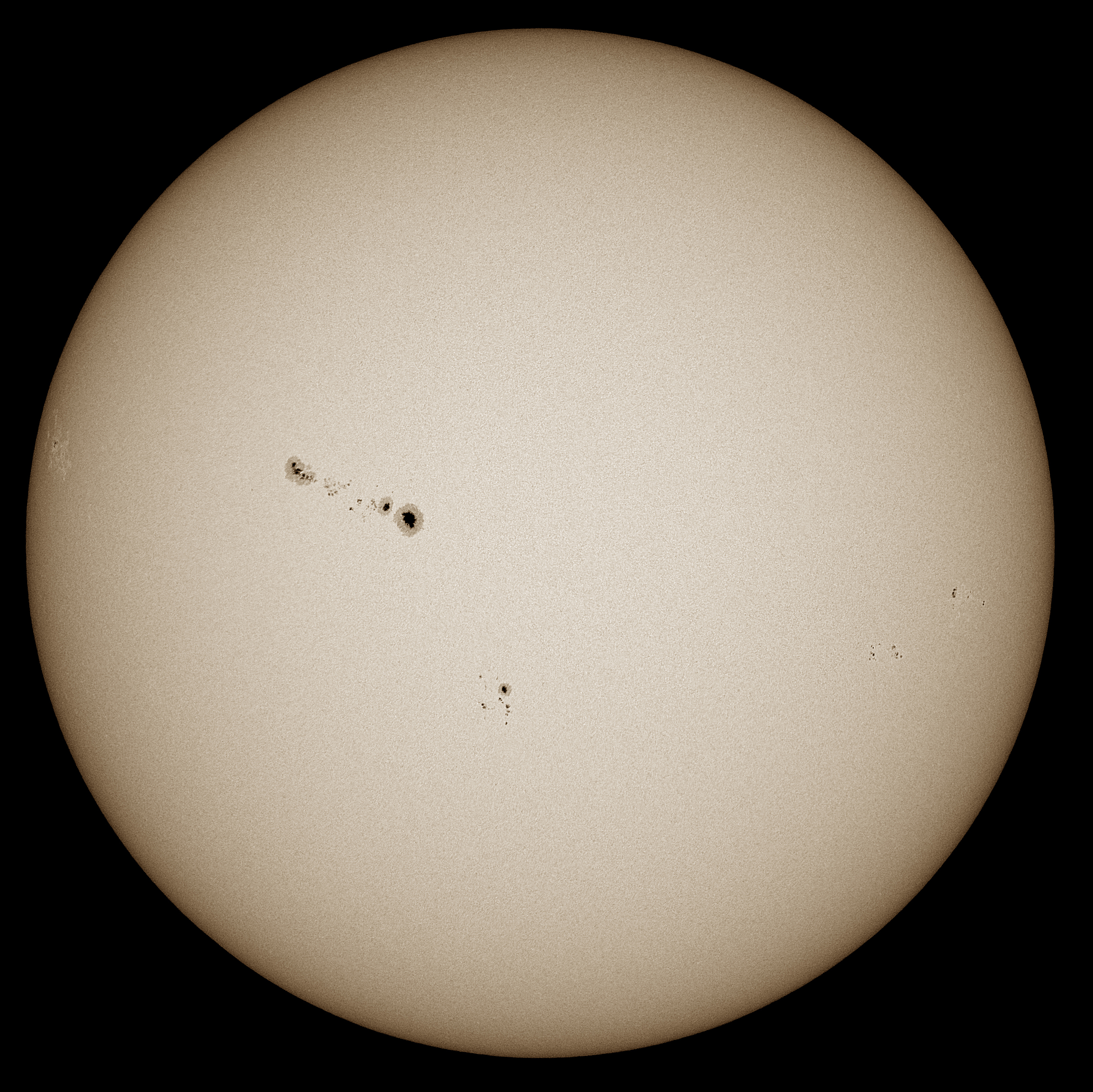 | Teleskop/Objektiv | Refraktor Vixen ED 115/890 mit Sonnenfolie 3,8 und Fotokonverter 1,4x sowie Grünfilter |