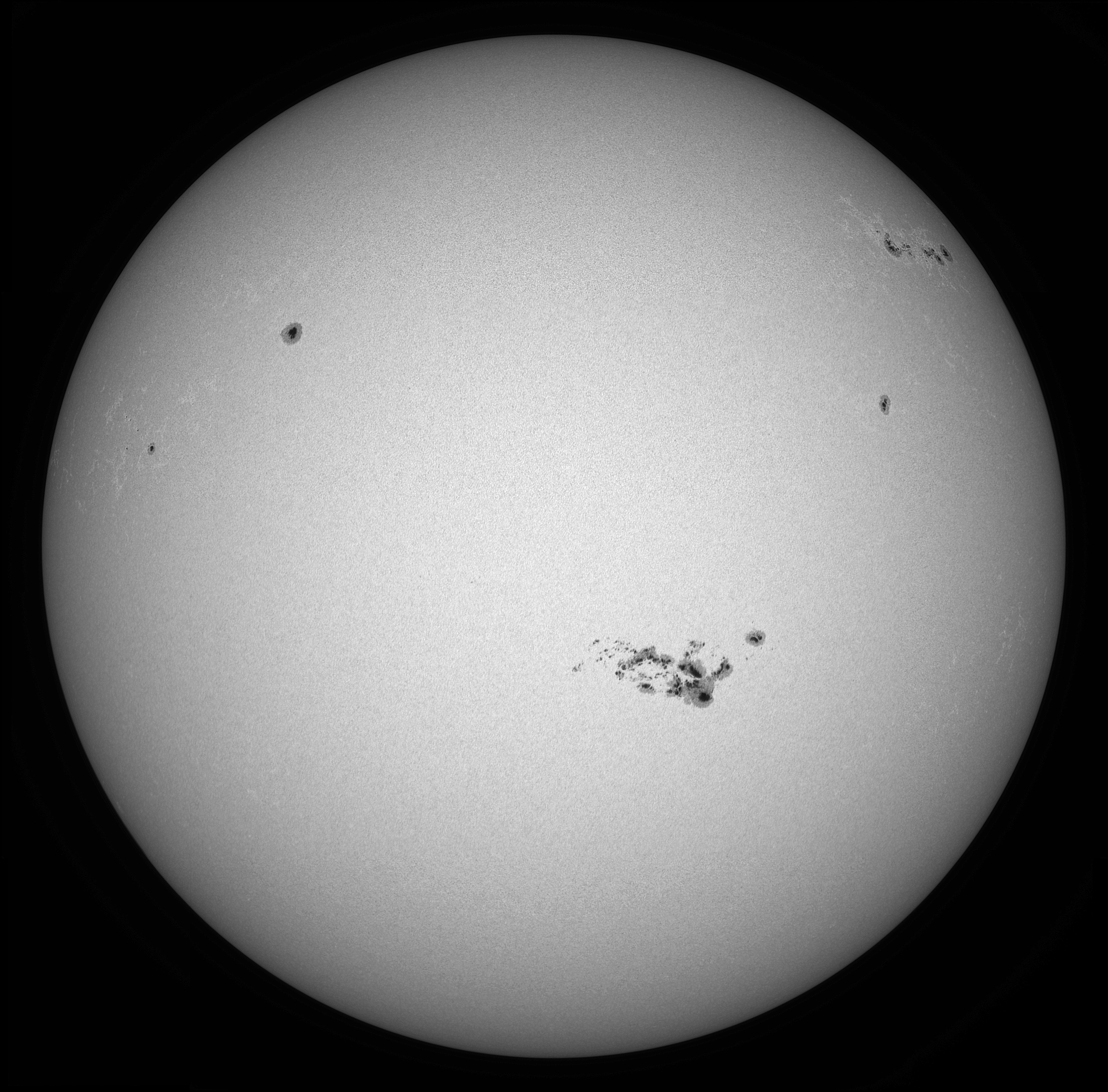 Mosaik aus sechs Einzelaufnahmen, Aufnahmesoftware SharpCap Pro, Video zerlegt und 10% von 1000 Bildern gestackt mit Autostakkert, Mosaik erstellt erstellt mit iMerge, Nachbearbeitung mit Photoshop. Vixen Refraktor ED 102/920mm, Lunt Herschelkeil, Baader Solar-Contiunuum Filter.