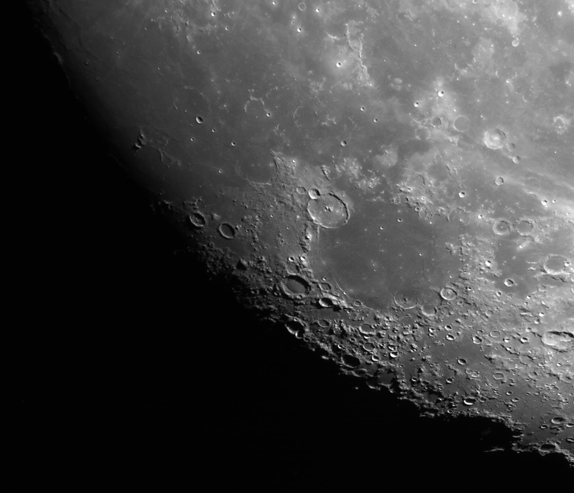 Auf gleicher Höhe wie Gassendi nach links zum Terminator ist sehr schön der Krater Hansteen und rechts neben ihm der Mons Hansteen zu erkennen. Gleich daneben der "dunkle Billy".