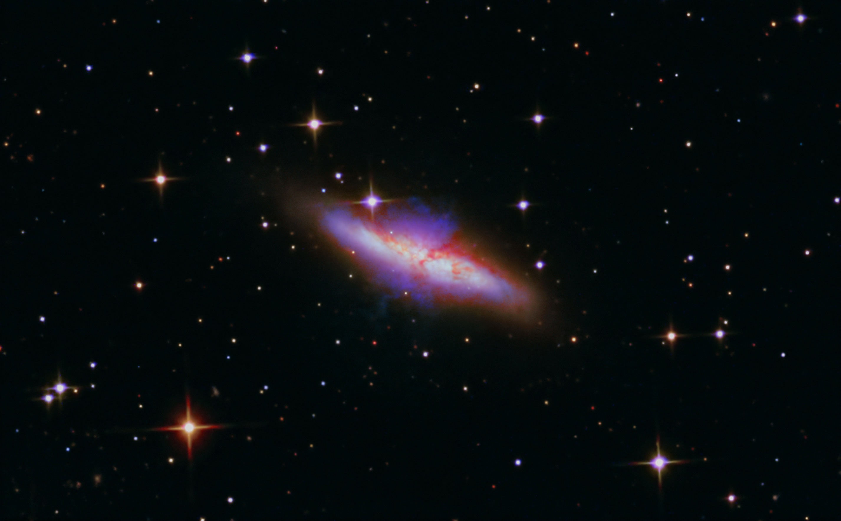 Leserbilder Astronomie: Die UV- und IR-Emissionen der Zigarrengalaxie (Messier 82)