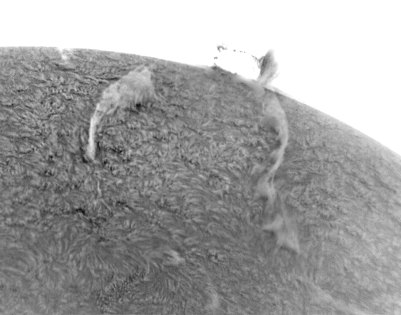 Die bereits gezeigten zwei Protuberanzen hier in der Bearbeitung invertiert und sw.