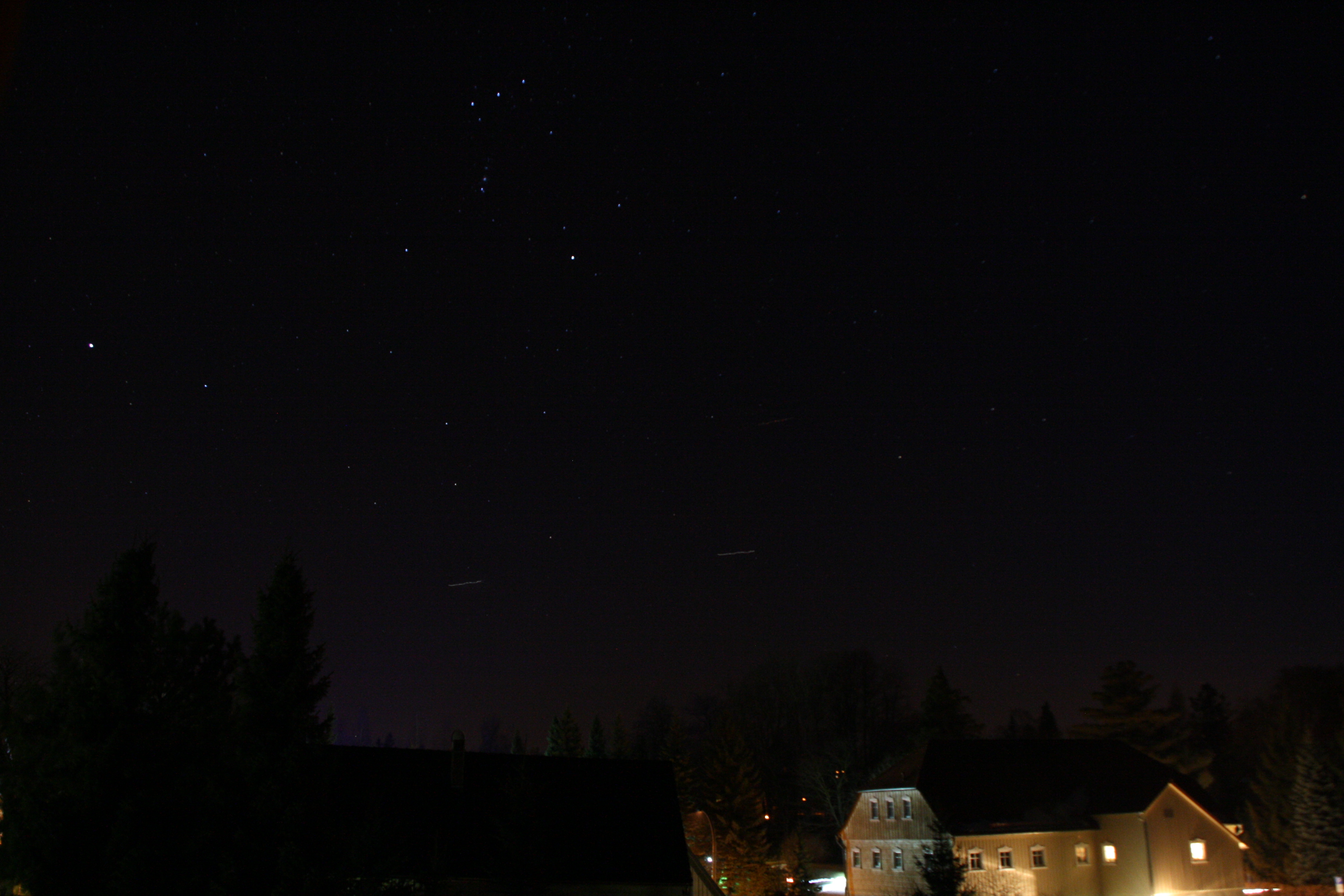 Leserbilder Astronomie: Discovery und ISS im Transit vor Orion und Sirius