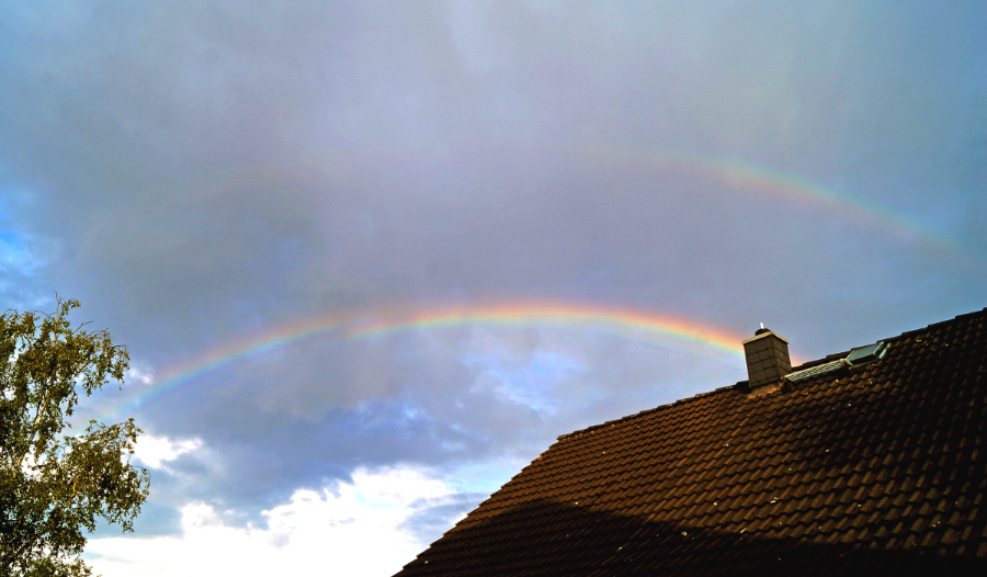 Gestern (am 25. Juli 2017) habe ich diesen Regenbogen fotografieren können. Bisher habe ich noch keinen gesehen, der einen "Umbruch" in einem Segment hatte (oder noch nicht bemerkt).