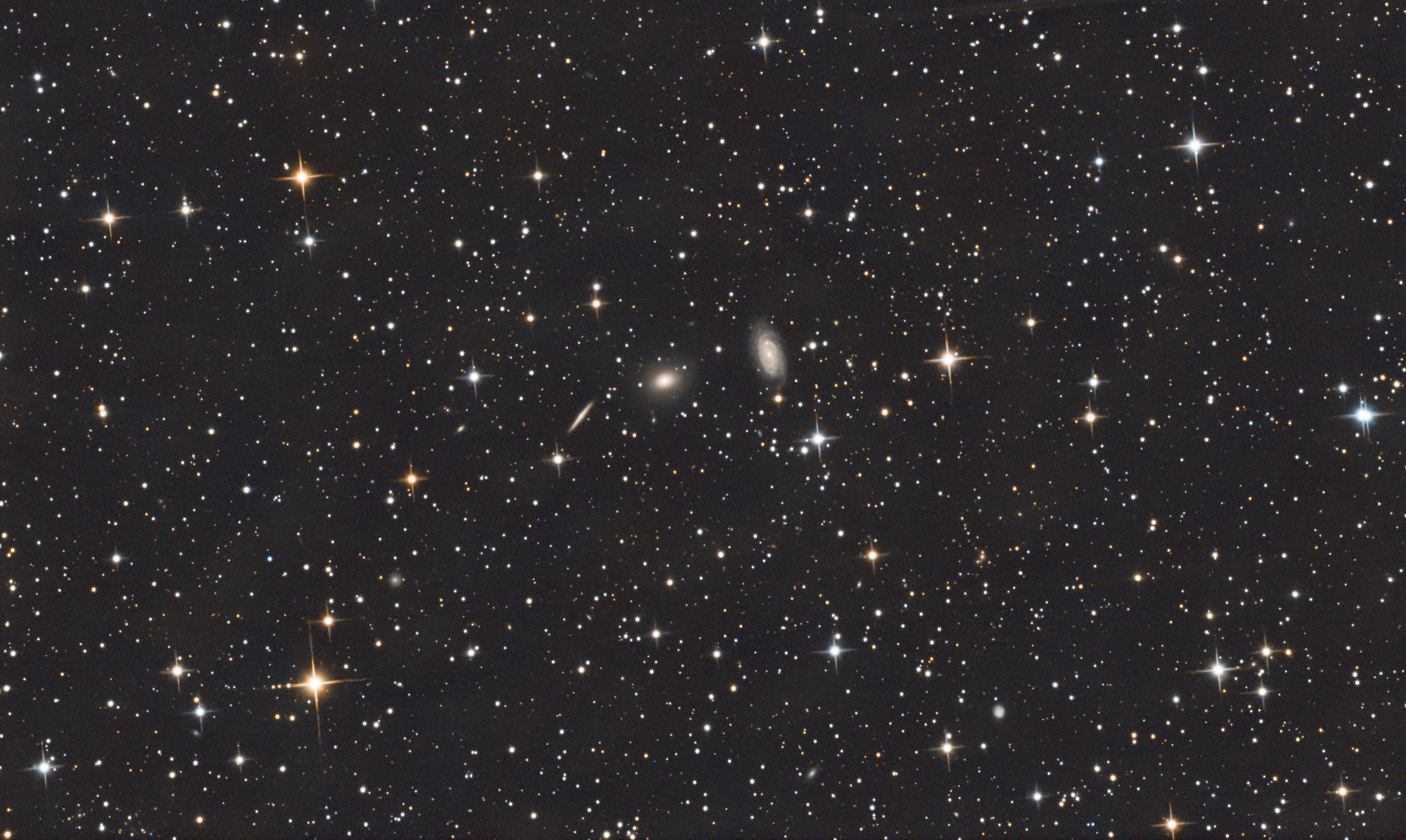 Das Draco-Triplett, hier sind nur die prominenten Vertreter auf dem Bild. Hier gilt es mehr als nur drei Galaxien zu sehen. Mit einer Brennweite von 750 mm ist ein weites Feld an Sternen und Galaxien sichtbar geworden.