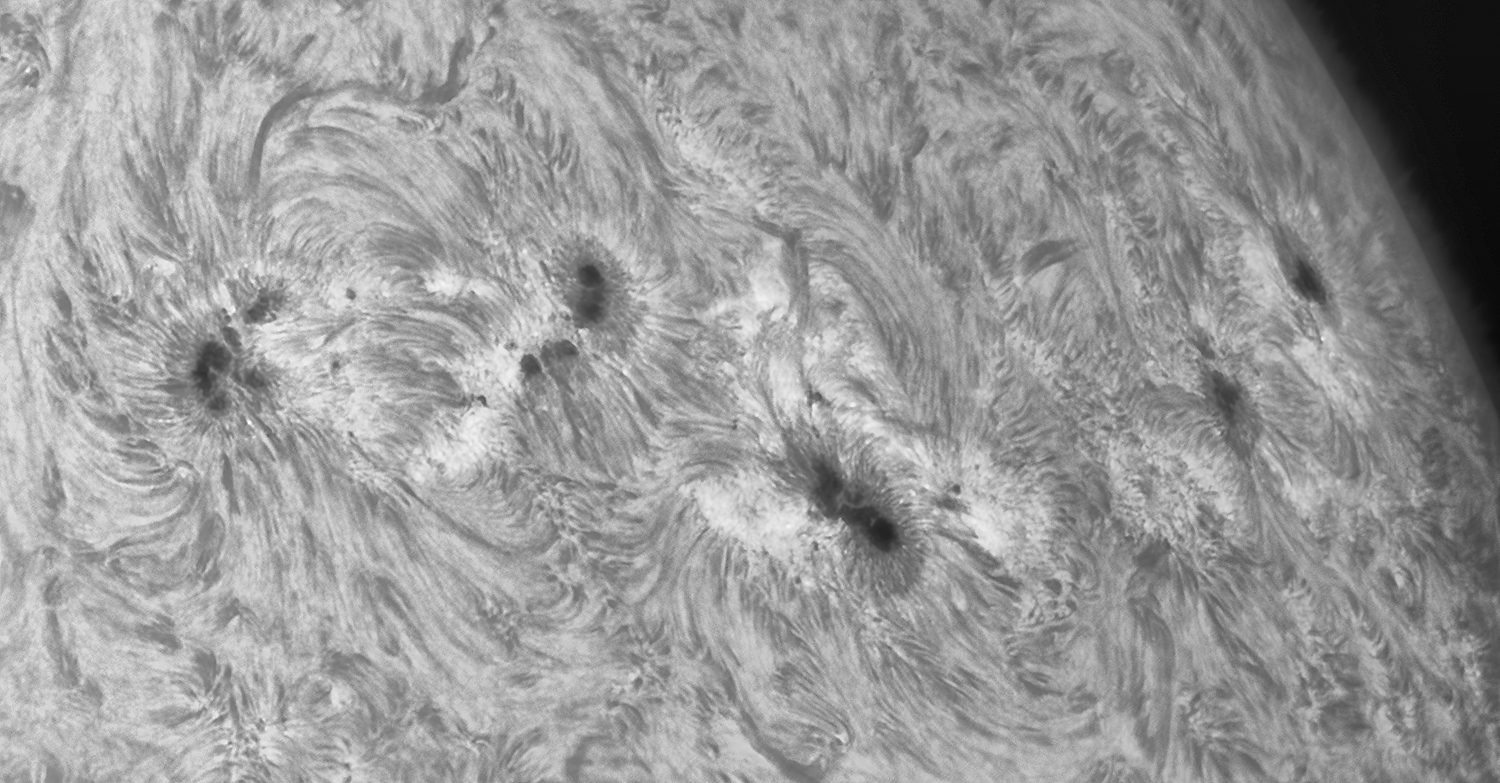 Gleich vier aktive Regionen drängten sich am heutigen 19. Juli 2025 im Nordwesten der Sonne zusammen.