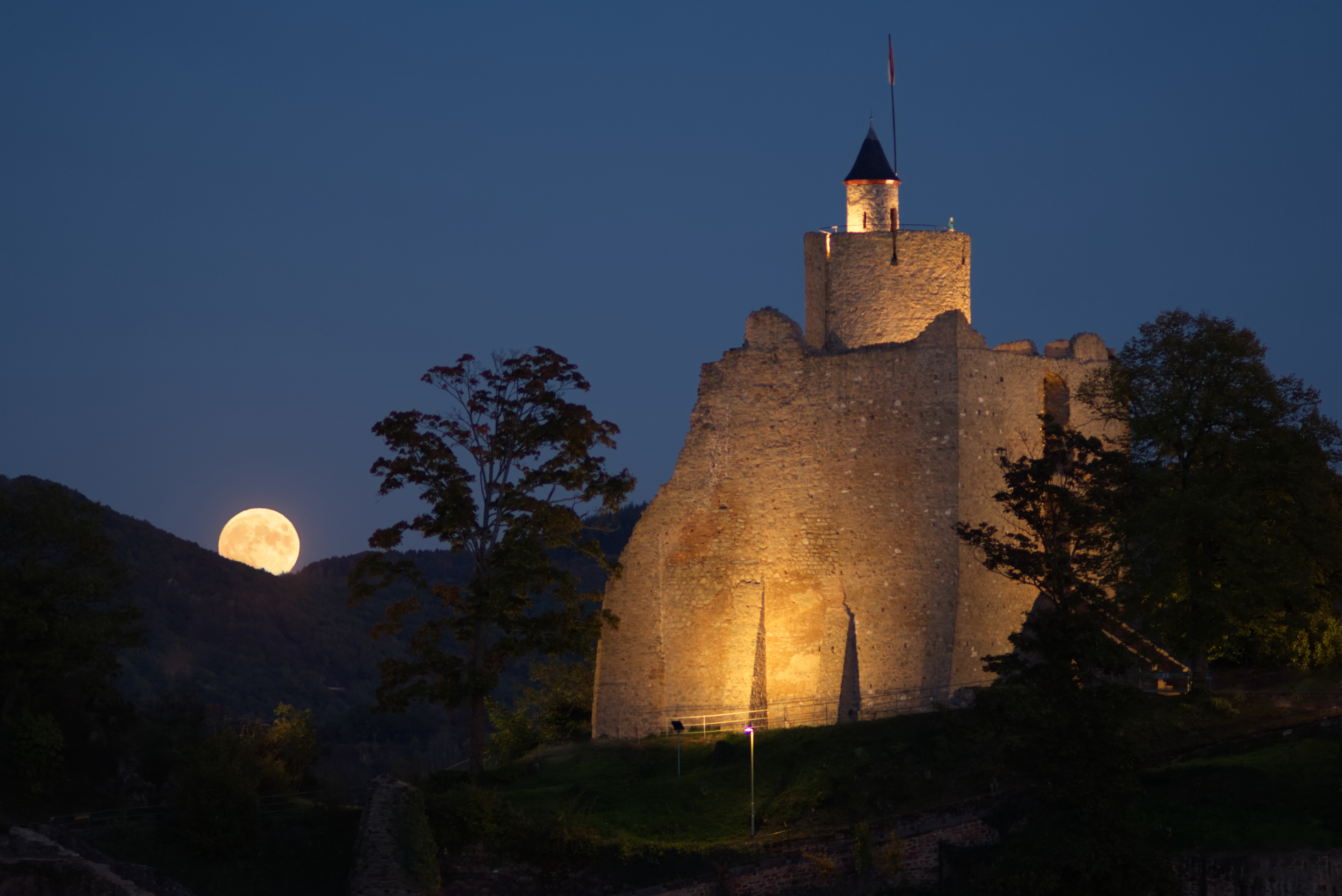Am Abend des 9. Oktober 2022 konnte der Vollmond neben der Burgruine Saarburg beim Aufgang am Osthimmel beobachtet werden. Die Burg aus dem 10. Jahrhundert ist das imposante Wahrzeichen der gleichnamigen Stadt Saarburg in Rheinland-Pfalz. Unser Trabant zog dann nördlich am Burgturm vorbei. Im Übrigen wird der Oktobervollmond auch als Jägermond bezeichnet. Auf jeden Fall waren beide Motive ein grandioser Anblick für Naturliebhaber.