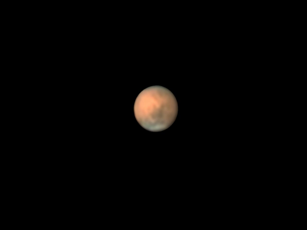 Der Planet Mars befand sich zum Aufnahmezeitpunkt um 03:54 Uhr MESZ rund 13 Grad (!) über dem Horizont, bei 10 Grad Lufttemperatur. Das Seeing war verhältnismäßig ruhig. Mars war rund 74,7 Millionen Kilometer von der Erde entfernt, der scheinbare Durchmesser lag bei rund 18,7 Bogensekunden. Mittlerweile überzieht der Staub weite Teile der Marsoberfläche. Im Nordosten ist andeutungsweise noch Acidalia Planitia und darunter etwas südwestlich Chryse Planitia zu erkennen. In der Mitte der sichtbaren Hemissphäre liegt das Valles Marineris, mittlerweile überwiegend von Staubwolken belegt. Das gleiche gilt für die Tharsis-Region im westlichen bzw. nordwestlichen Teil der sichtbaren Hemissphäre. Ingesamt wurden von rund 50000 Bildern IrRGB (davon 30000 mit IR-Passfilter) bei einer Belichtungszeit von 6,657 Millisekunden, 126 Bildern pro Sekunde, 4 Prozent der Bilder im jeweiligen Kanal verwendet. Das Bild wurde nachträglich um den Faktor 2 vergrößert.