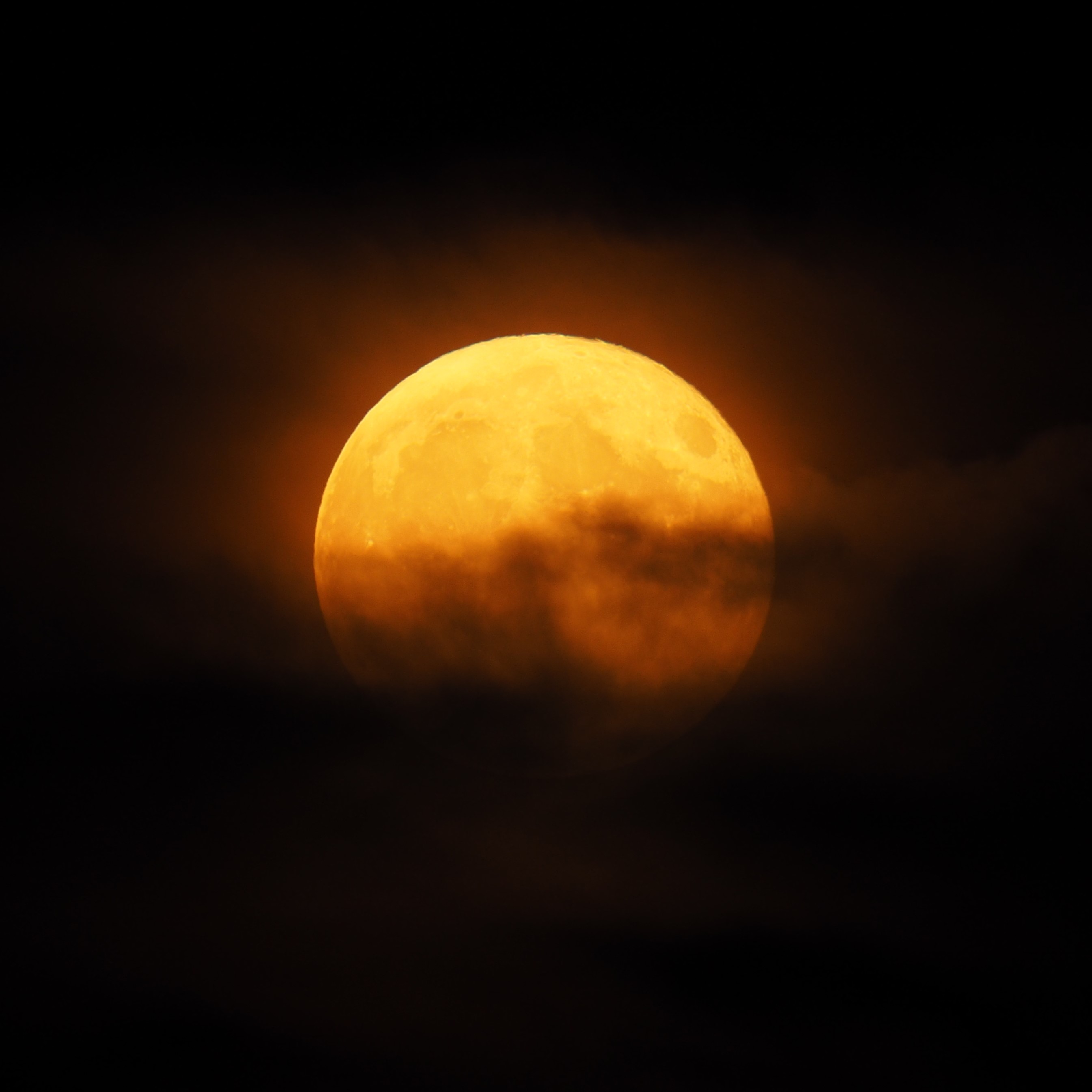 Nach Mondaufgang hatte es sich dieser Supermond in einem Wolkenbett bequem gemacht. Visuell war dies ein schöner farblicher Anblick.
