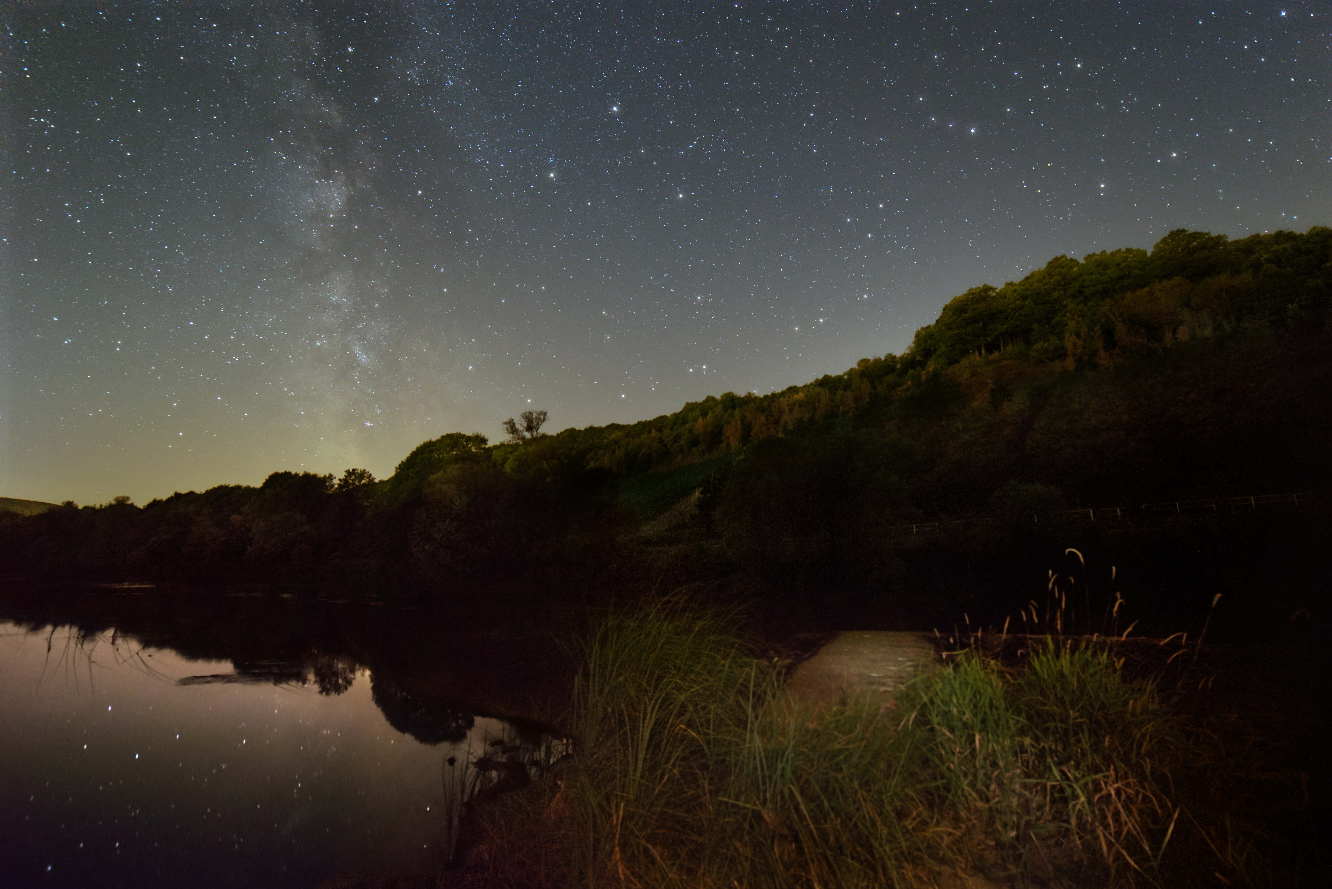 Die beiden Sternbilder Schlange und Schlangenträger werden in Sternkarten meist zusammenhängend dargestellt. Das Sternbild Schlangenträger ist ein Sommersternbild, das aber bis in den Herbst hinein am Westhimmel aufzufinden ist. Es umfasst eine große Himmelsregion in Höhe des Himmelsäquators und wird überwiegend aus leuchtschwachen Sternen gebildet. Daher ist es an unserem Himmel nicht sonderlich einprägsam. Man findet es zwischen den Sternbildern Bärenhüter und der Südspitze des Sommerdreiecks. Hier finden sich viele Kugelsternhaufen wie M9, M10, oder M 107. Die Schlange ist ein aus zwei Teilen bestehendes Sternbild. Den Schlangenschwanz (Serpens Cauda) findet man in der Himmelsregion östlich des Schlangenträger. Den Schlangenkopf (Serpens Caput), schließt sich dem Schlangenträger westlich an. Auch in der Schlange finden sich interessante Beobachtungsobjekte wie den Kugelsternhaufen M 5 oder den berühmten Adlernebel M 16. Eingerahmt von Nördlicher Krone und der Milchstraße zeigt sich auf dieser Aufnahme das Sternbildpaar über dem Naturschutzgebiet Wiltinger Saarbogen, einem urigen, nicht kanalisierten Flussabschnitt der Saar nahe der Gemeinde Wiltingen in Rheinland- Pfalz.
