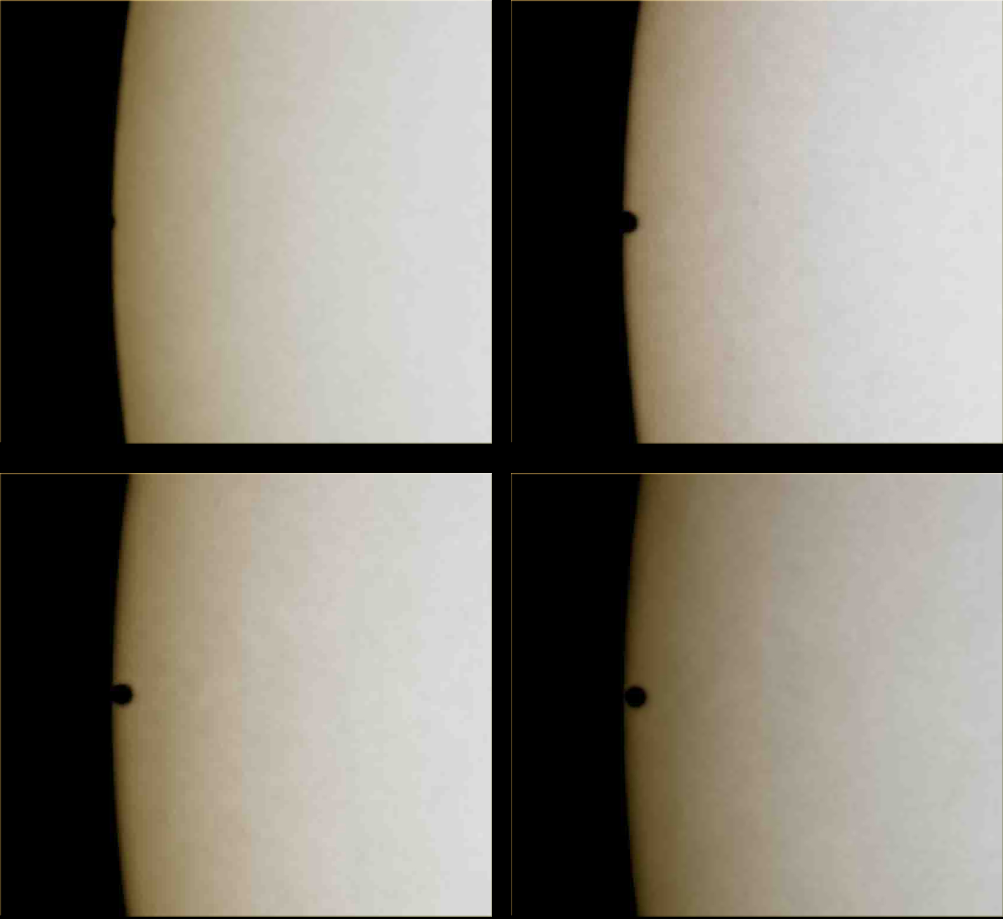 In der Mittagspause bot sich noch wolkenloser klarer Himmel, so dass das der Merkurtransit sehr schön verfolgt werden konnte. Hier eine Bildsequenz, die aus einem Video des Eintritts erstellt werden konnte.