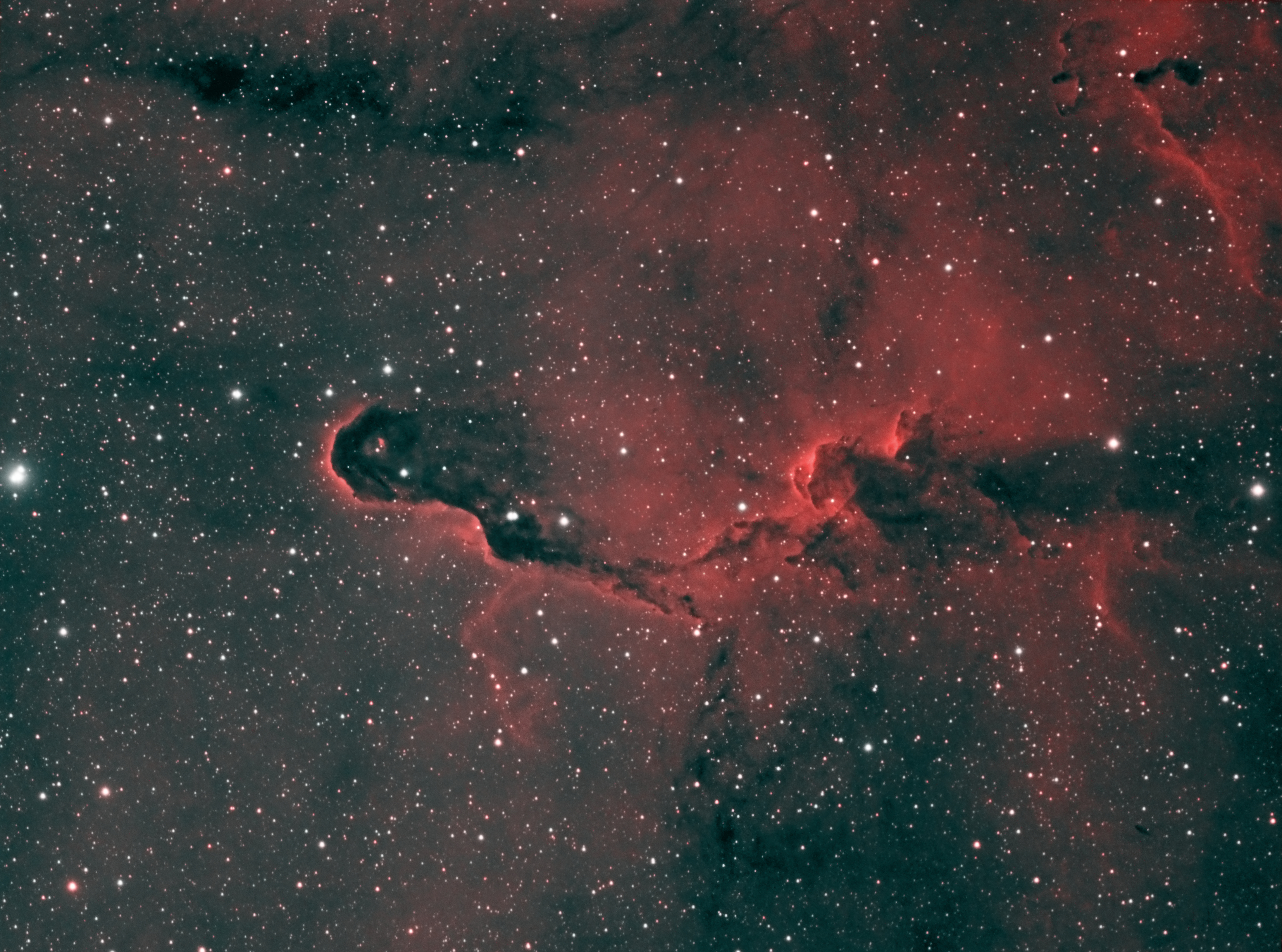 Über insgesamt drei Nächte konnte ich diese Globule im Schmalband belichten. Das Bild ist ein Bicolor-Komposit aus 15 x 1200 s H-alpha und 12 x 1200 s OIII.