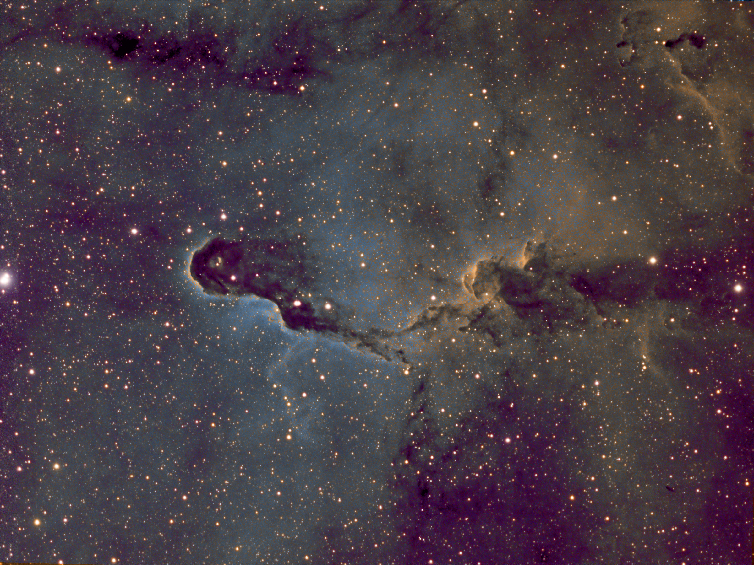 Über insgesamt drei Nächte konnte ich diese Globule im Schmalband belichten. Komposit aus 15 x 1200 s SII, 15 x 1200 s H-alpha und 12 x 1200 s OIII.