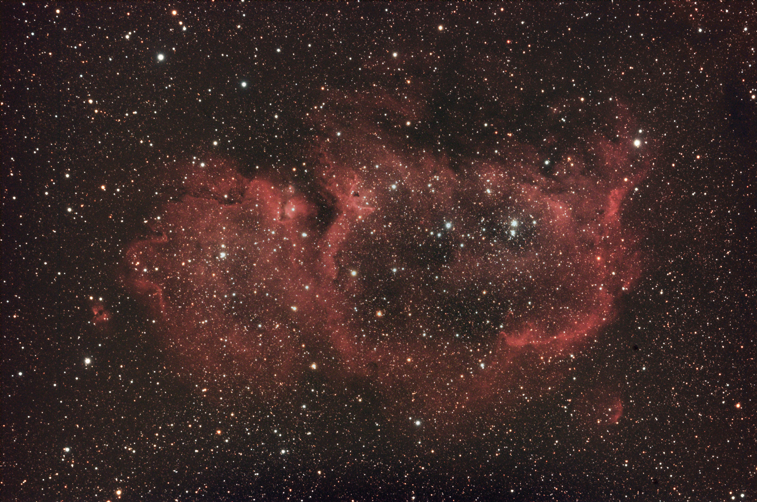 Sternhaufen und Nebel im Sternbild Cassiopeia, links ist noch der kleine Nebel SH2-201 und rechts unterhalb SH2-198 zu sehen.