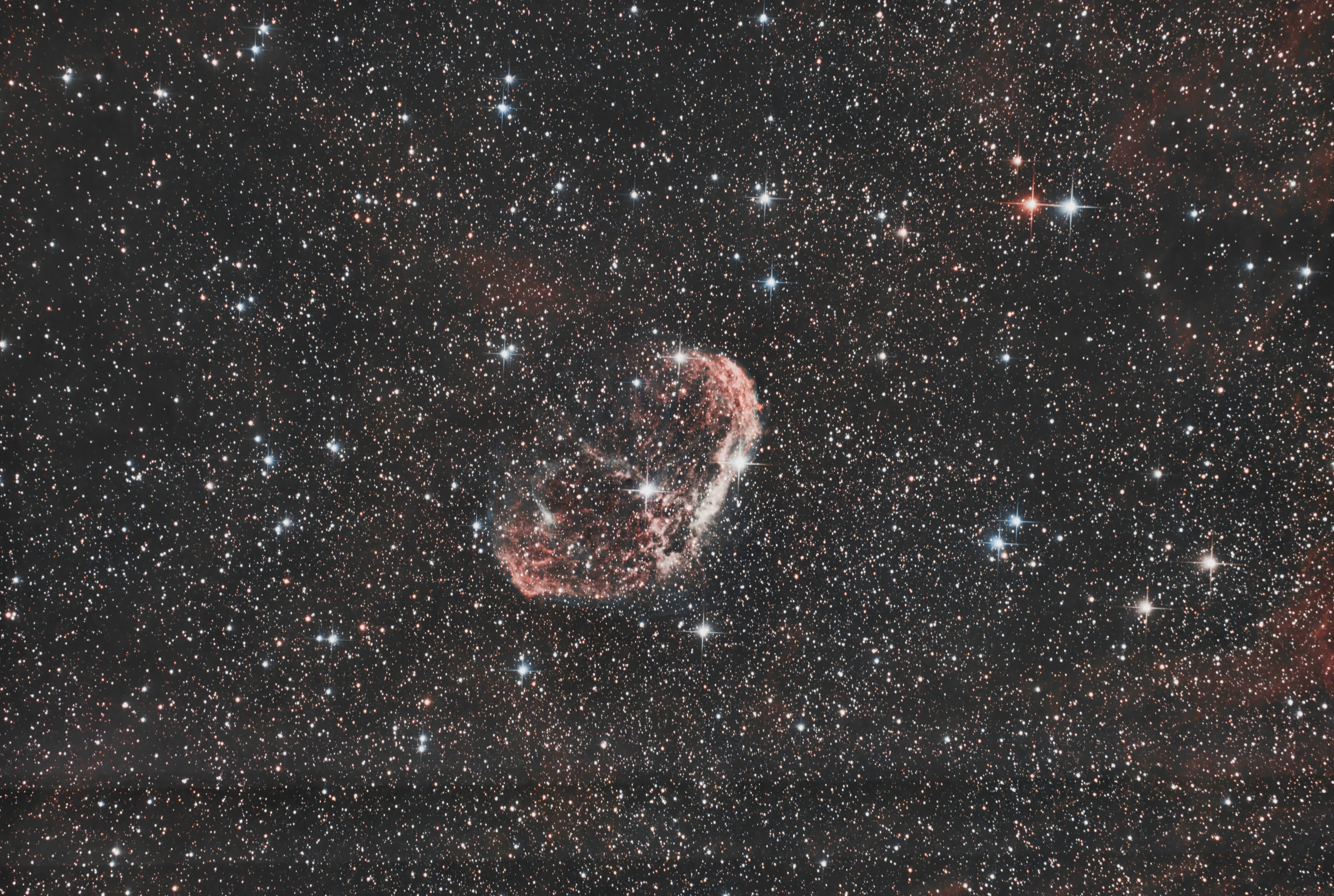 Der Emissionsnebel NGC 6888 im Sternbild Schwan wurde aufgenommen mit einer Touptek ATR2600C an einem Skywatcher 200P auf einer UMI17. Belichtungszeit zirka 2,5h mit Baader lightpolution filter.