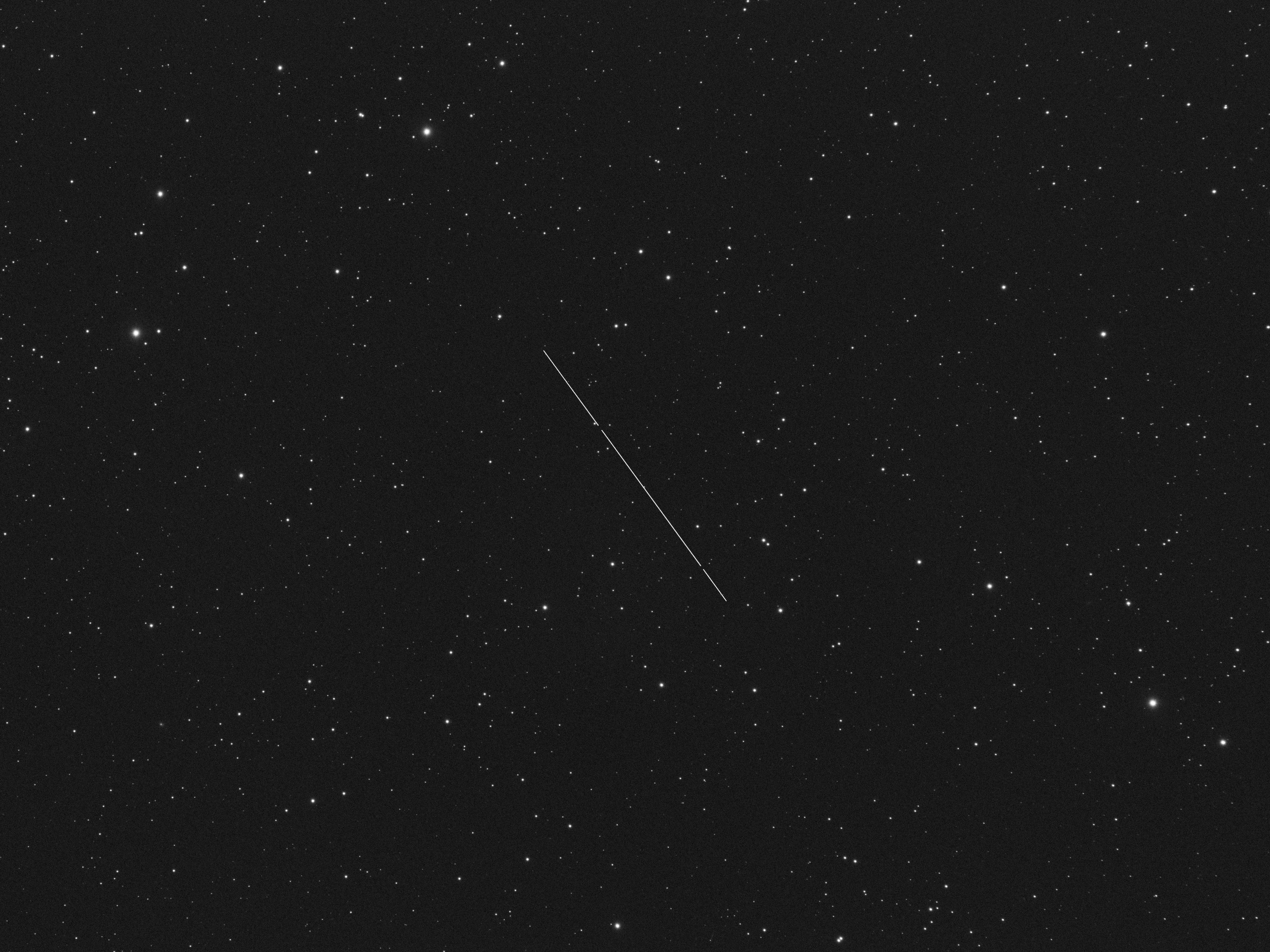 Der 1978 von Eleanor »Glo« Helin entdeckte Asteroid (2100) Ra-Shalom ist ein Erdbahnkreuzer, dessen Umlaufbahn weitgehend innerhalb der Erdumlaufbahn verläuft (Aten-Typ) und die Sonne in 277 Tagen umrundet. Der Name setzt sich zusammen aus dem ägyptischen Sonnengott Ra und dem hebräischen Wort für Frieden. Der Name erinnert an das im Camp David ausgehandelte Friedensabkommen zwischen Ägypten und Israel. Die Aufnahme zeigt die Strichspur, die der Asteroid in der Nacht vom 24. auf den 25. August 2022 in einem Zeitraum von vier Stunden hinterlassen hat. Zum Zeitpunkt der Aufnahme hatte (2100) Ra-Shalom eine Helligkeit von 14,4 mag und bewegte sich mit etwa 4,5 Bogenminuten pro Stunde durch das Sternbild Pegasus. Der Asteroid befand sich in einer Distanz von 0,19 AU zur Erde. Die Distanz zur Sonne betrug 1,17 AU. Zur Erstellung des Bildes wurden 419 Aufnahmen zu je 30 Sekunden verarbeitet. Die beiden Lücken in der Strichspur sind der notwendigen Nachfokussierung geschuldet.