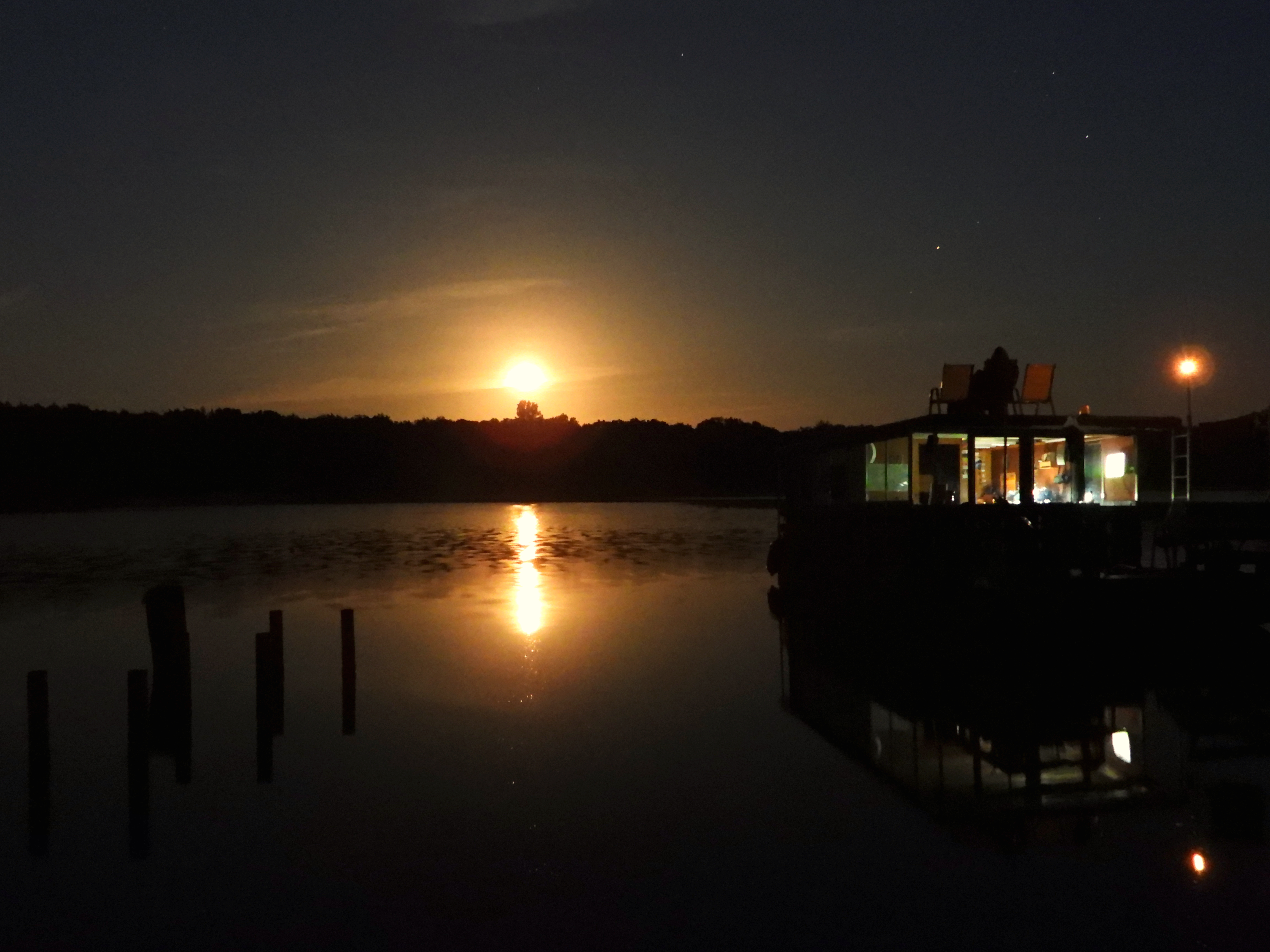 Am 14. Juni 2022 ging der Erbeervollmond im Havelland auf und spiegelte sich in einem See, wo ein Hausboot ankerte. Film davon: https://www.youtube.com/watch?v=GP0pZF86FjM