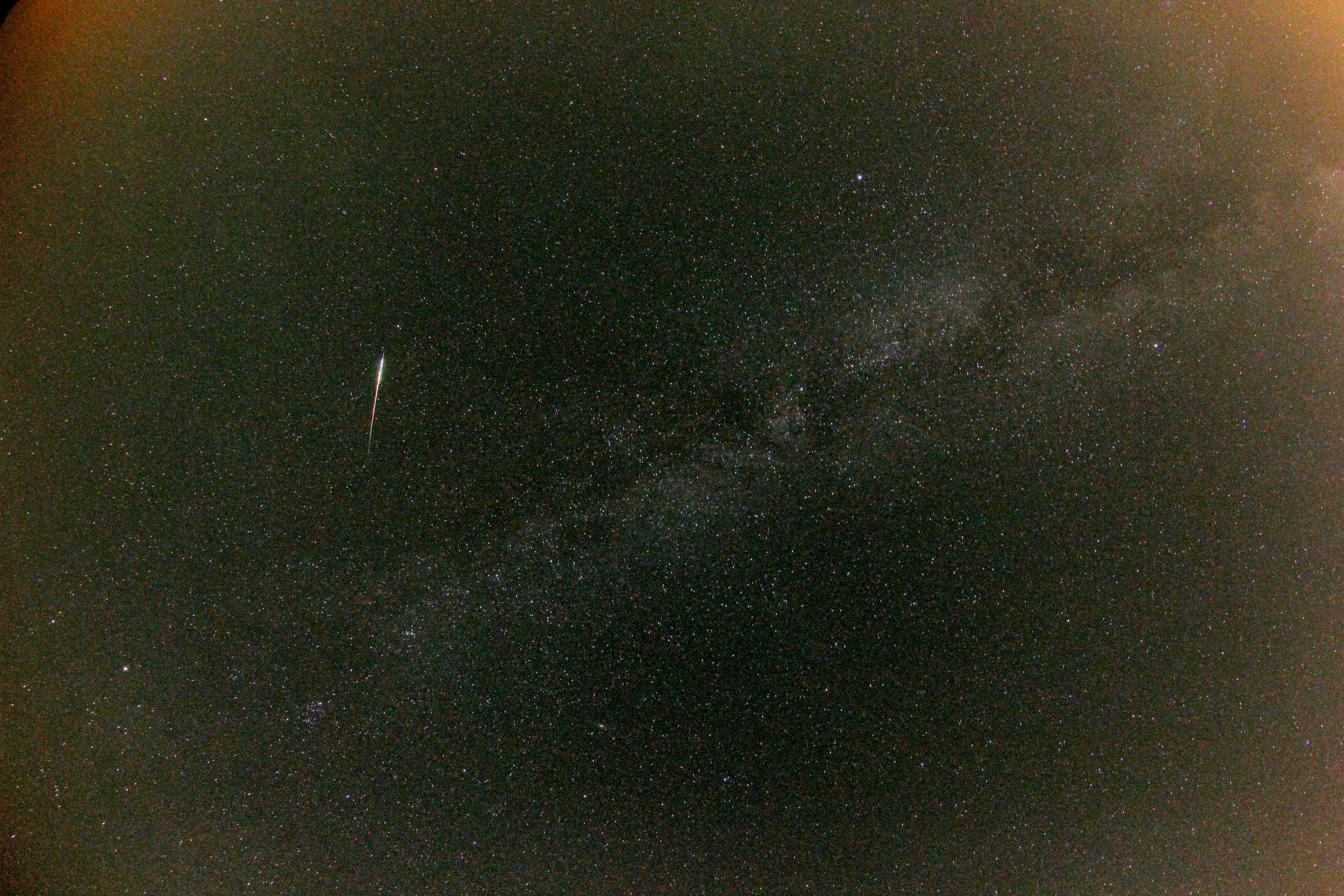 | Nachbearbeitung | Dieses Bild entstand durch Überlagerung der Meteoraufnahme (38 sec) mit einer zweiten Aufnahme der Milchstraße (67 sec). Die Überlagerung erfolgte mit Fitswork durch „multiplizieren" |