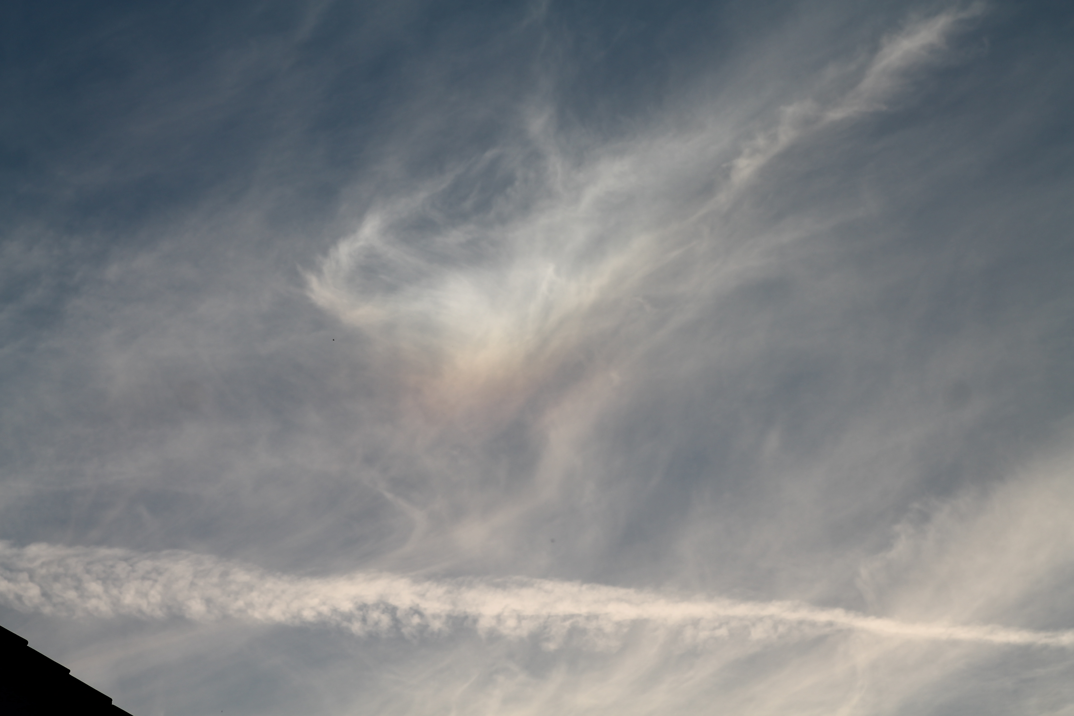 Am Abend des 22. April 2014 bemerkte ich farbige Reflexionen an Eiskristallwolken oberhalb der Sonne, die schon sehr horizontnah stand.
