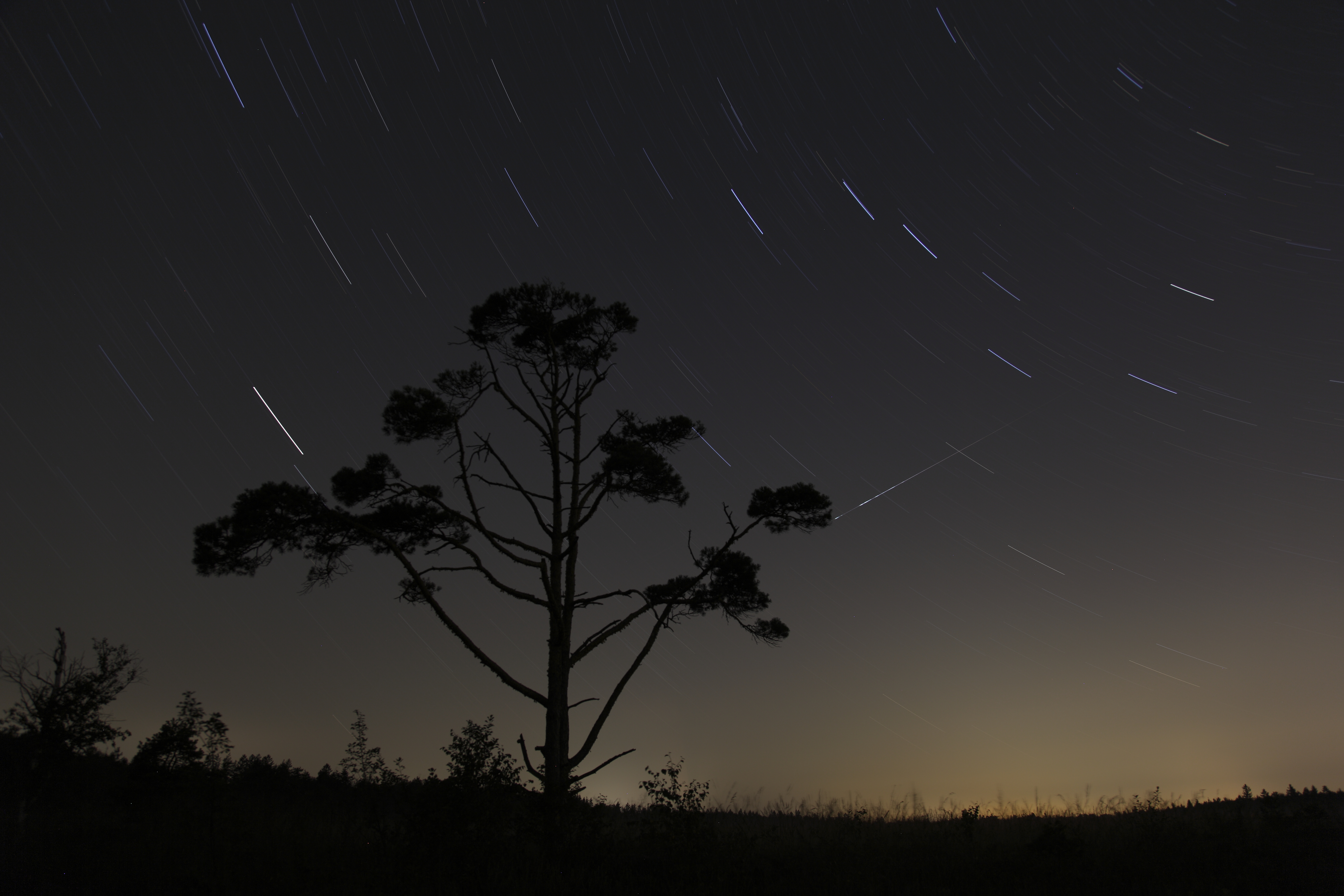 Bei einer Langzeitbelichtung des Sternenhimmels um diese Moorbirke fing ich zufällig diese hell leuchtende Feuerkugel ein. Ich konnte sogar farbige Rauchspuren am Himmel erkennen.