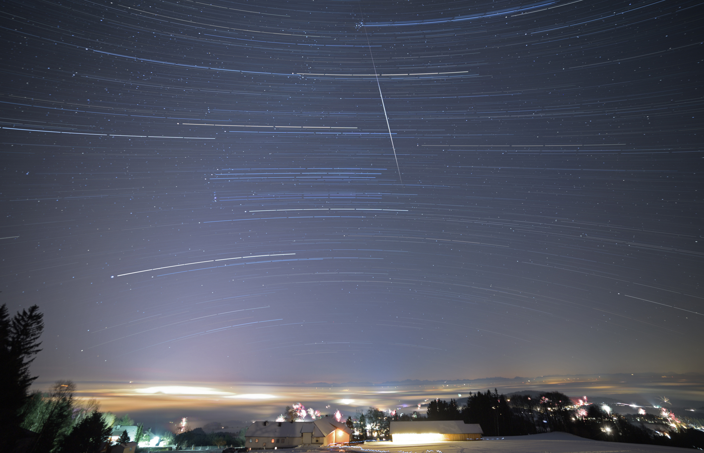 Leserbilder Astronomie: Feuerwerk unten Bolide von oben