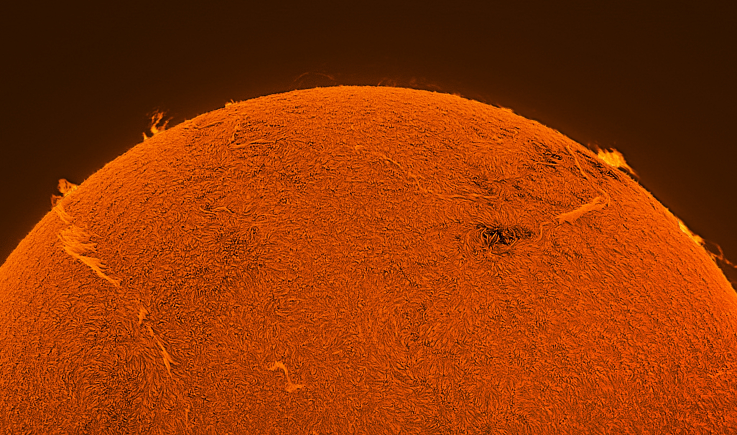 Schöne Filamente zeigen sich am Ostrand der Sonne. Am Rand sind diese dann als Protuberanzen sichtbar.