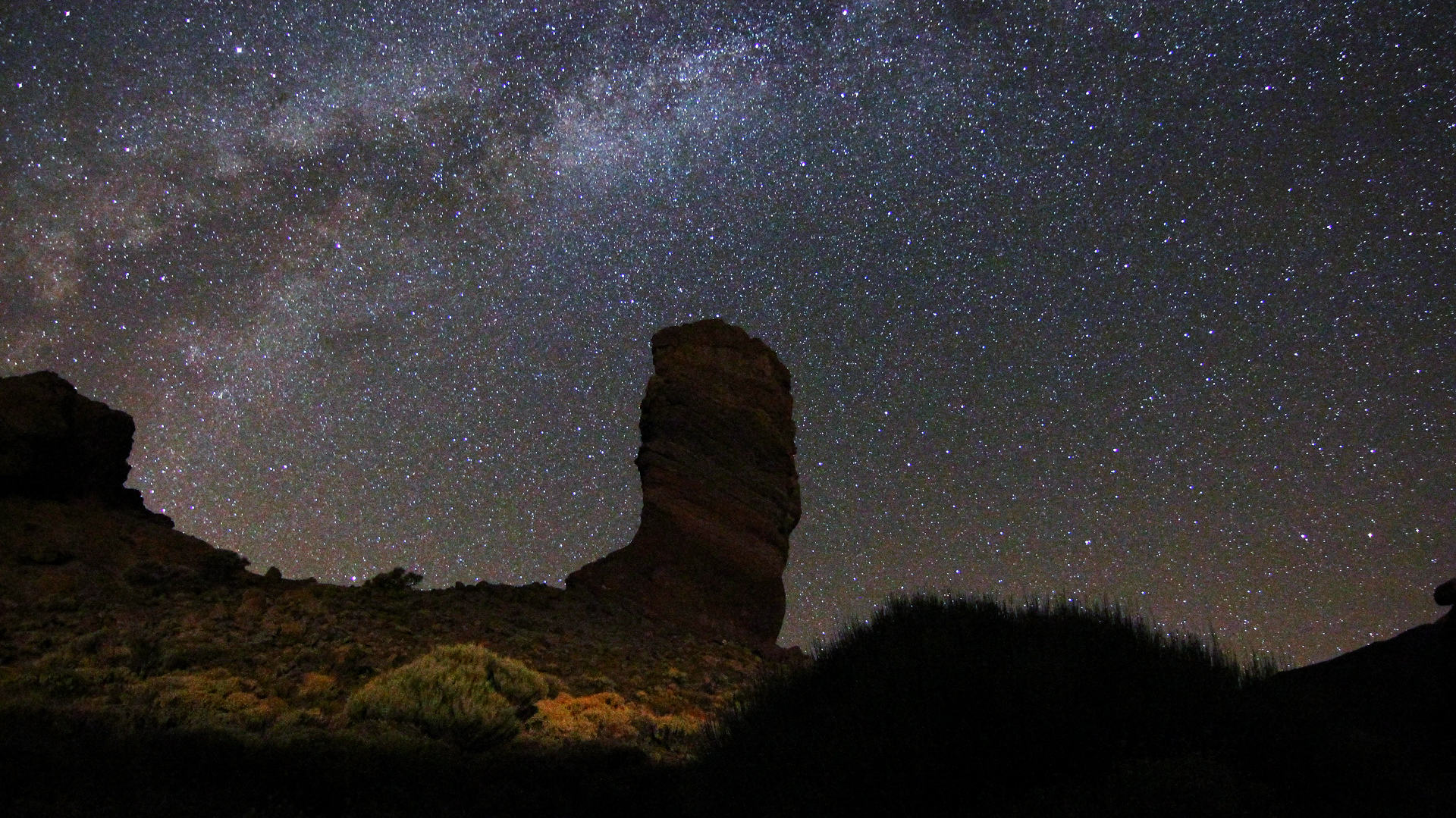 Diese Aufnahme enstand während meines Aufenthalts auf der Ferieninsel Teneriffa, unterhalb des höchsten spanischen Bergs El Teide. In rund 2200 Meter Höhe ist es relativ klar und windstill. Es herrscht dort eine gespenstische Ruhe, und es gibt wenig Flugbewegungen durch Flugzeuge über der Insel. Die Milchstraße ist dort für uns Mitteleuropäer immer noch sehr beeindruckend.