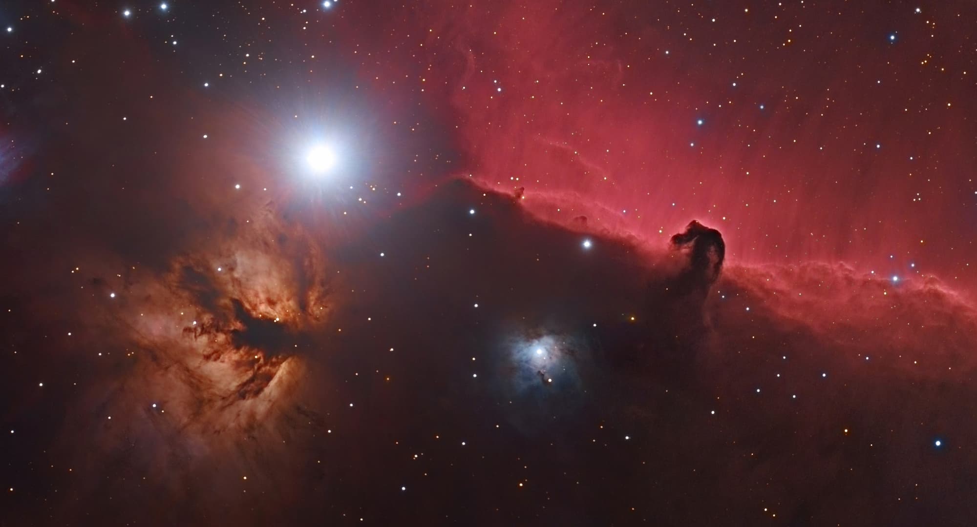 Nach Wochen des schlechten Wetters konnte ich endlich ein Projekt aus dem Jahre 2014 abschließen: Die Vervollständigung der Region um Alnitak im Orion mit dem Pferdekopf- und dem Flammennebel.