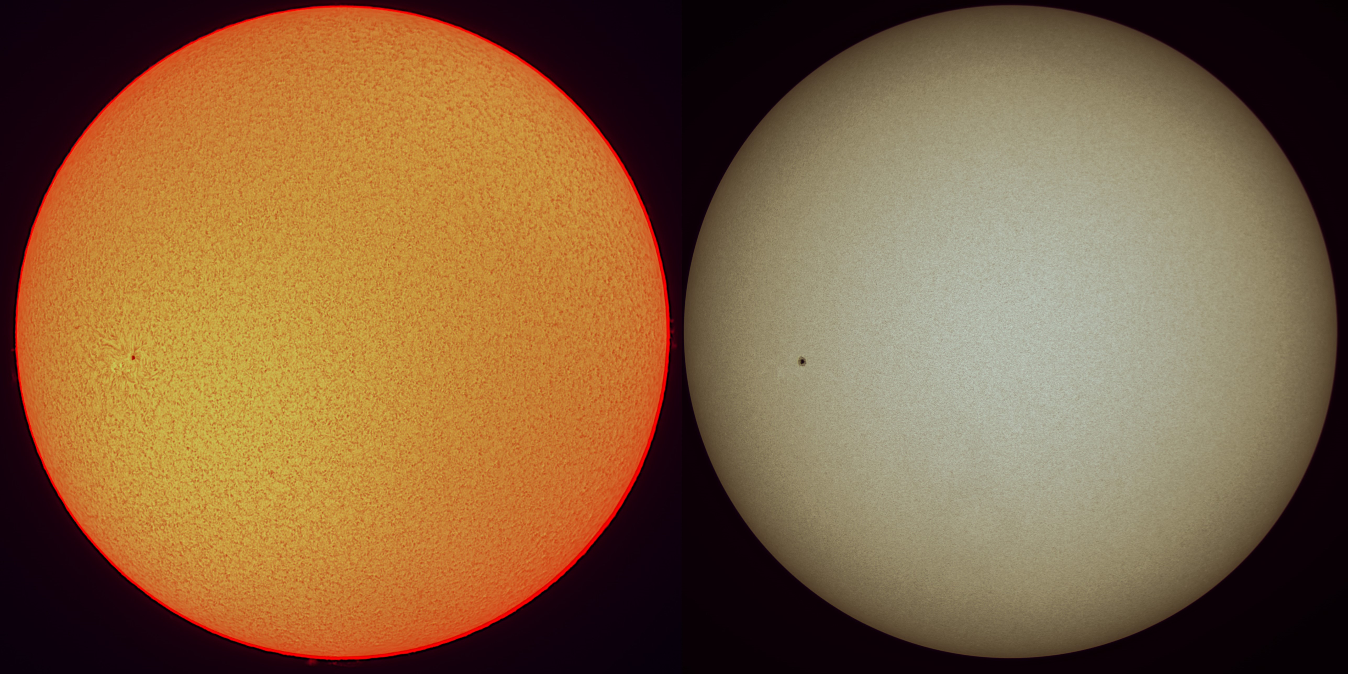 Leserbilder Astronomie: Fleck AR 2767 in H-Alpha- und sichtbarem Licht