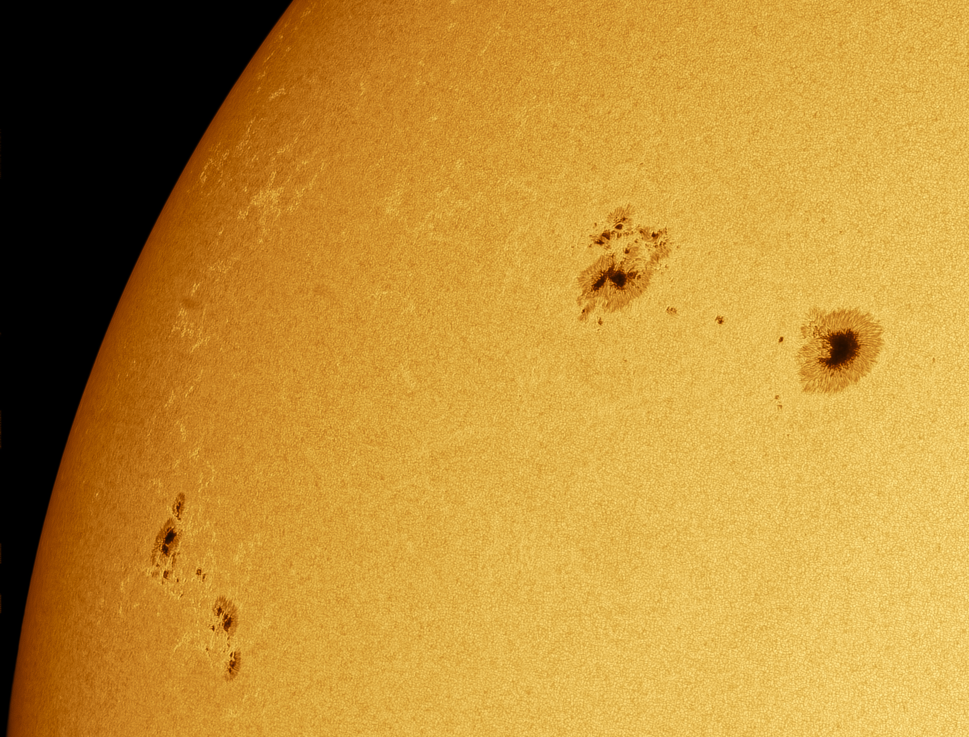 Eine zunehmende Fleckenbildung und die tägliche Veränderung kann an den meisten Tagen dieser Woche morgens bis 10 Uhr gut beobachtet werden. Hier 133372 und 13373.