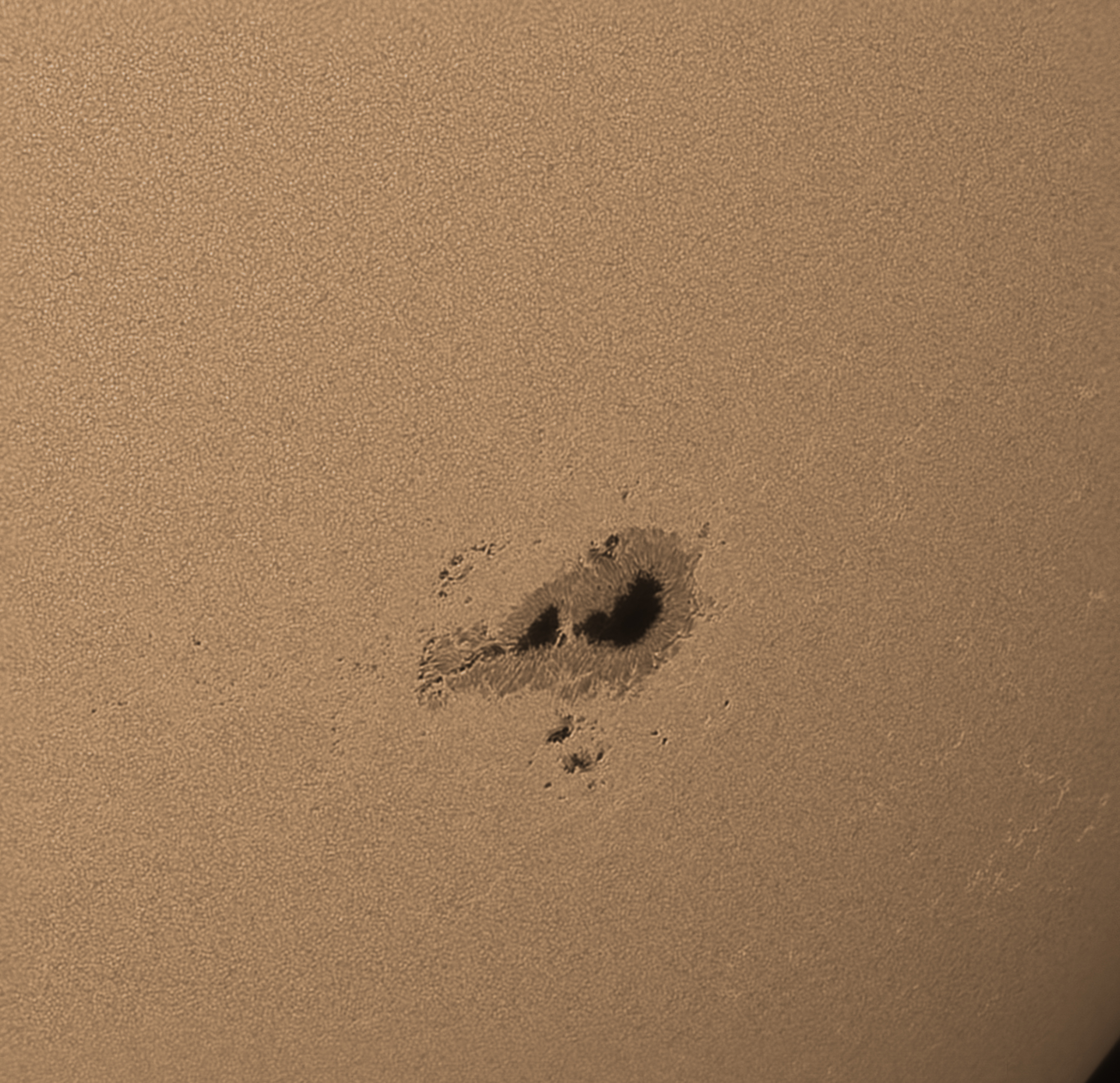 Bereits am 7. Juli konnte ich diese Gruppe am Ostrand aufzeichnen. Wie gut an den Randfackeln rechts unten zu erkennen ist, nähert sie sich nun langsam dem Westrand.