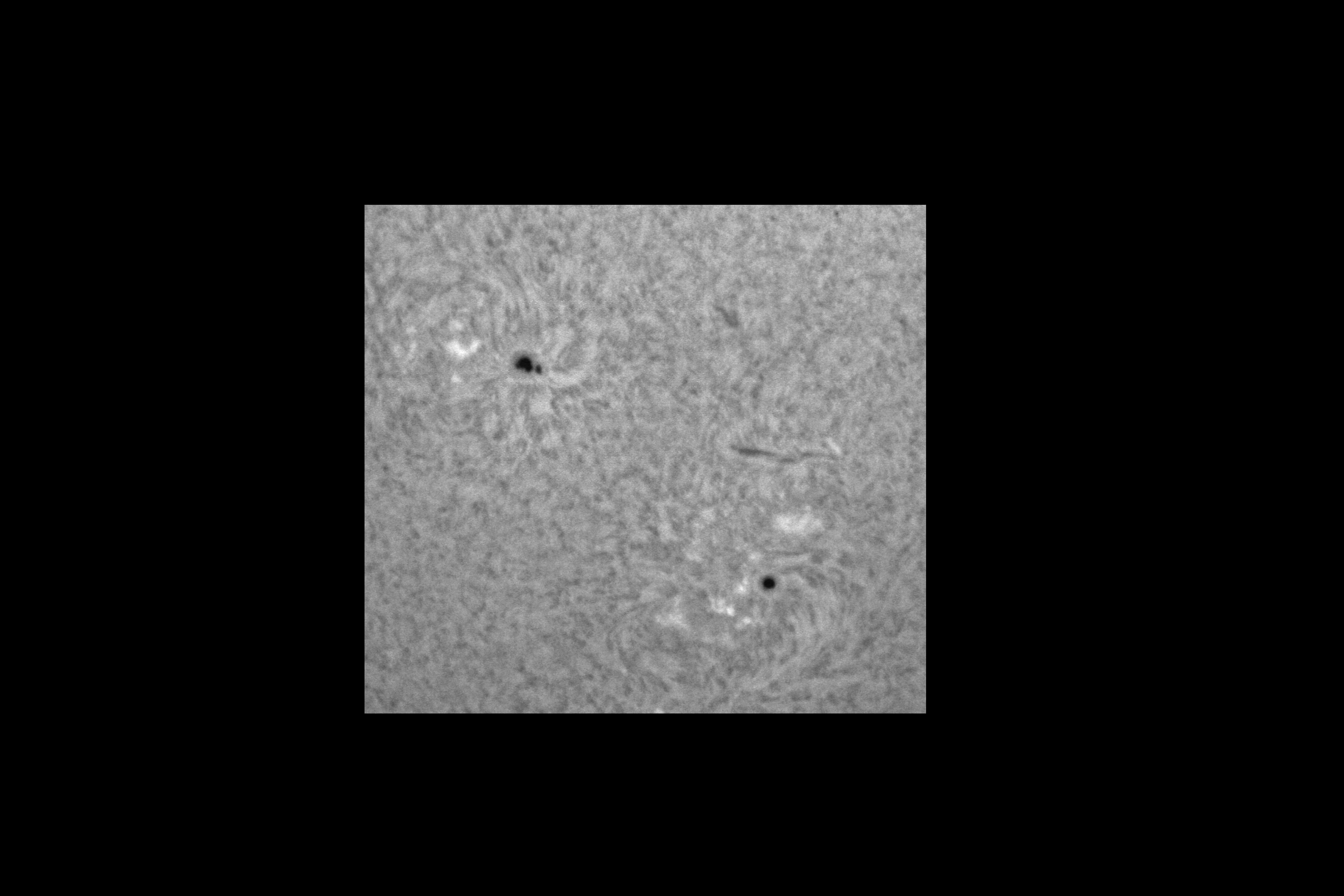 Die beiden Fleckengruppen im H-alpha-Licht.