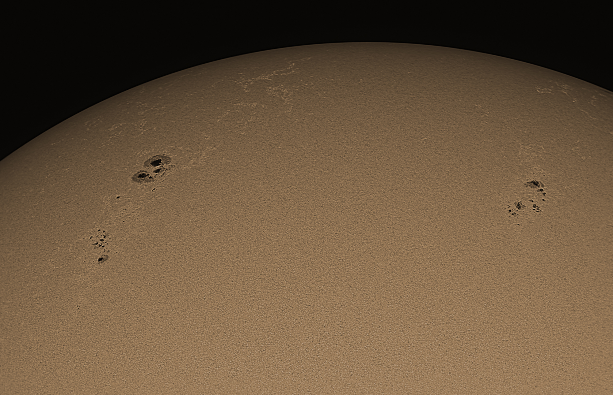 Die beiden aktiven Regionen 3559 (links) und 3560 (rechts) sind nun nahe am westlichen Sonnenrand. Trotz tiefem Sonnenstand war das Seeing ganz brauchbar.