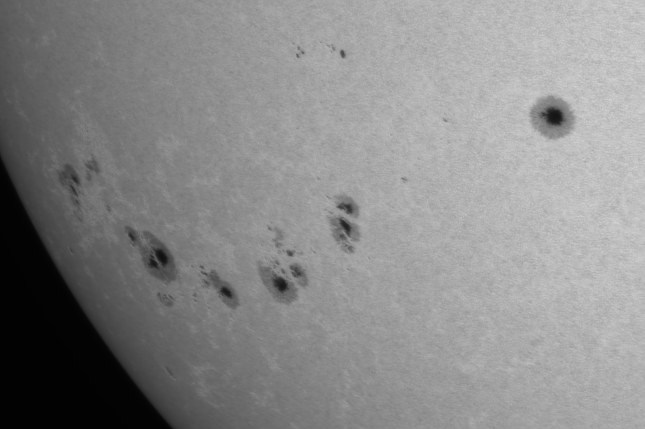 | Teleskop/Objektiv | Intes 150/900 MN (fokal) + Baader Solar Continuum Filter (7 nm) + Baader Solarfolie OD 3.8 (photographisch), 5% von 2000 Frames |