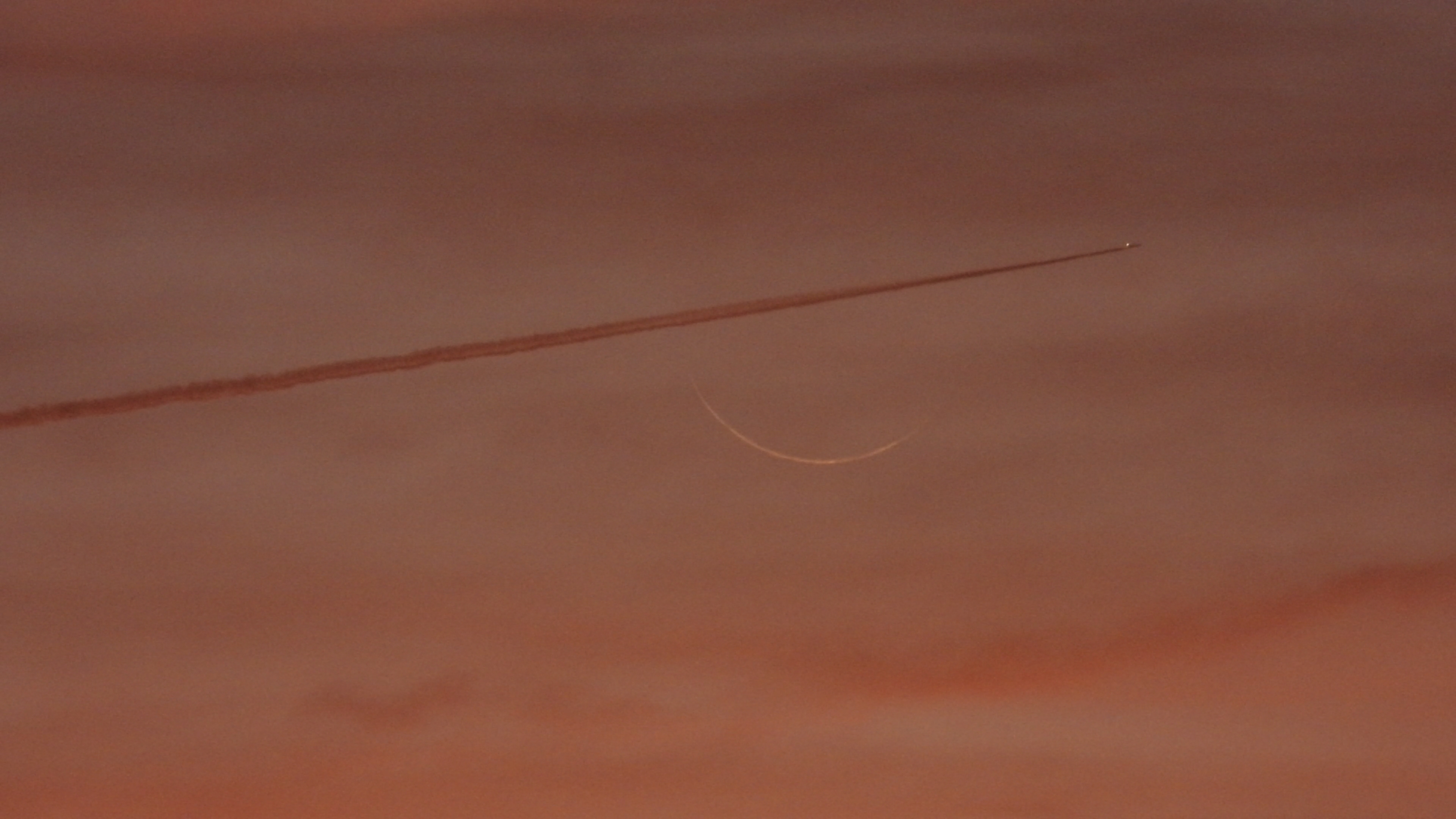 Leserbilder Astronomie: Flugzeug kreuzt liegende Mondsichel -1