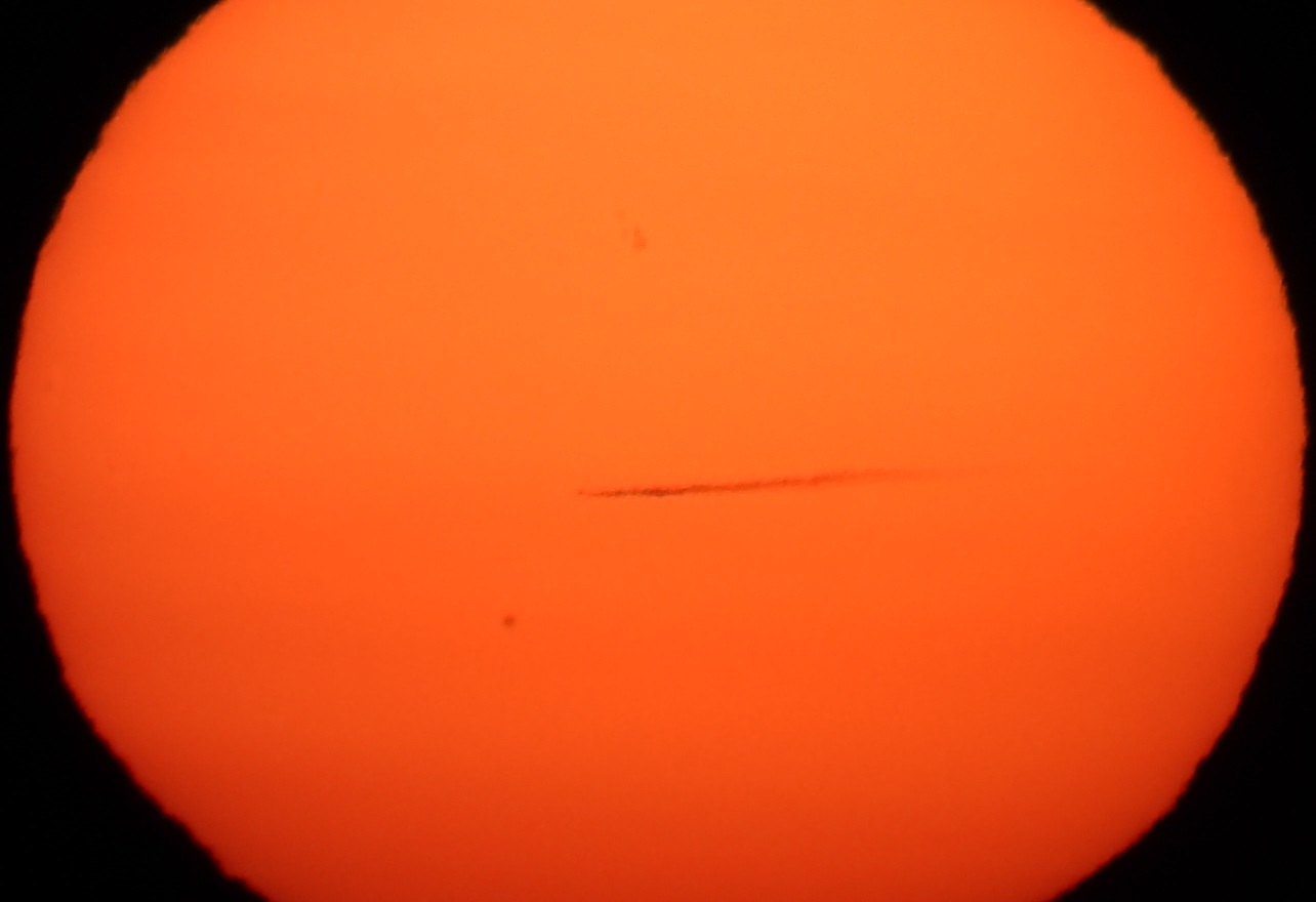 Während eines Sonnenuntergangs in der Toskana flog ein Flugzeug zwischen zwei Sonnenflecken hindurch. Film davon: https://www.youtube.com/watch?v=sgeKZTYvXPg Die Aufnahmen entstanden mit einem ND1000-Filter, der beim Herauszoomen abgenommen wurde.