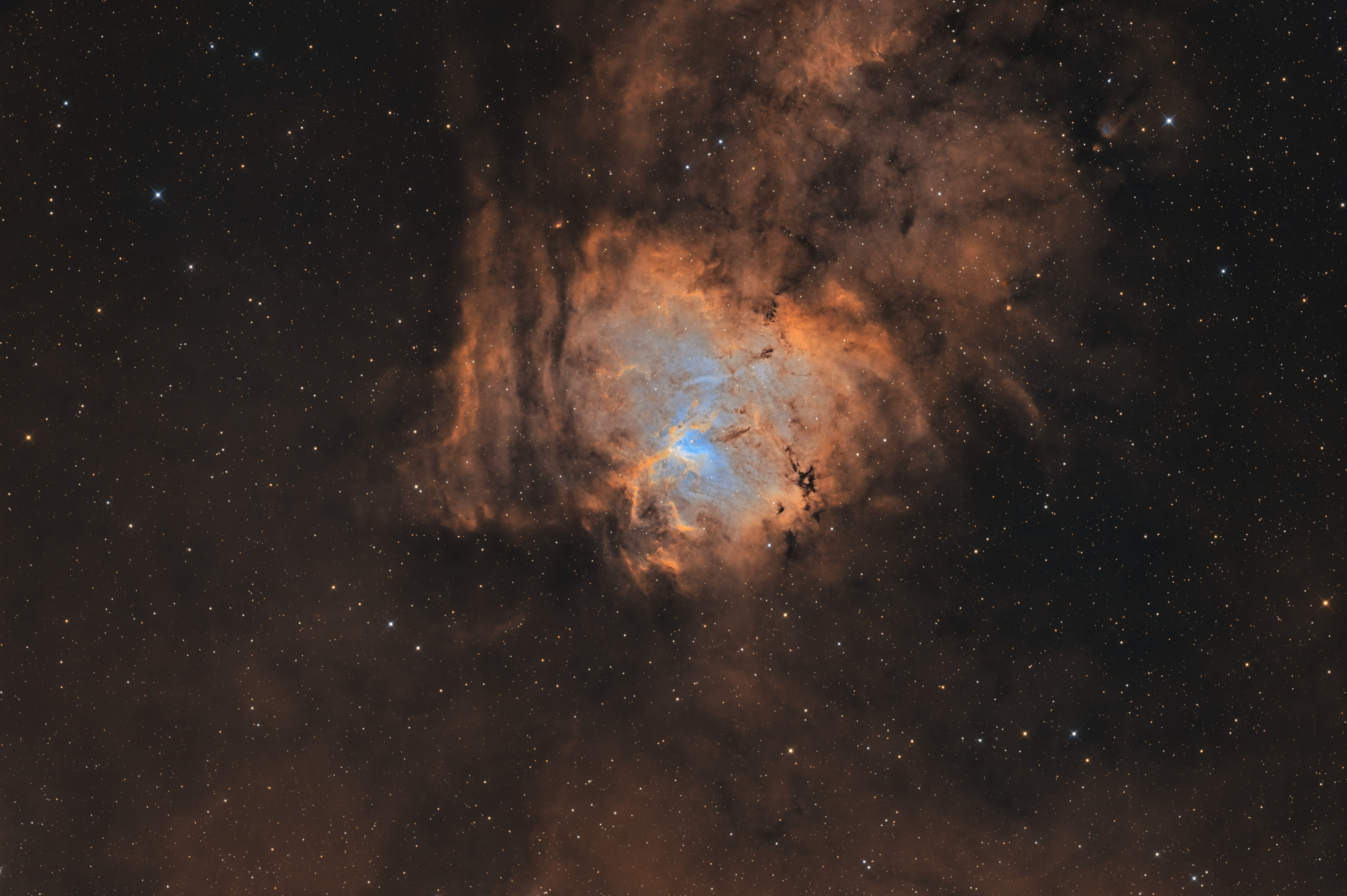 Wer möchte in seinem Leben nicht auch einmal einen fossilen Fußabdruck sehen? Als Astrofotograf musste ich dafür gar nicht weit reisen. Im November 2024 habe ich auf meinem Balkon meinen Lacerta Newton 800/200mm mit meiner Monokamera QHY268m 5 Nächte auf NGC 1491 ausgerichtet. Zur Hervorhebung der Objektstrukturen habe ich Schmalbanddaten in Ha, OIII und SII aufgenommen und daraus ein SHO-Bild nach der Hubble-Farbpalette erstellt. Abschließend noch etwas Bildbearbeitung und ich konnte einen fossilen Fußabdruck mein eigen nennen. Es ist immer wieder faszinierend, welche wunderbaren Objekte unser Weltall zu bieten hat.