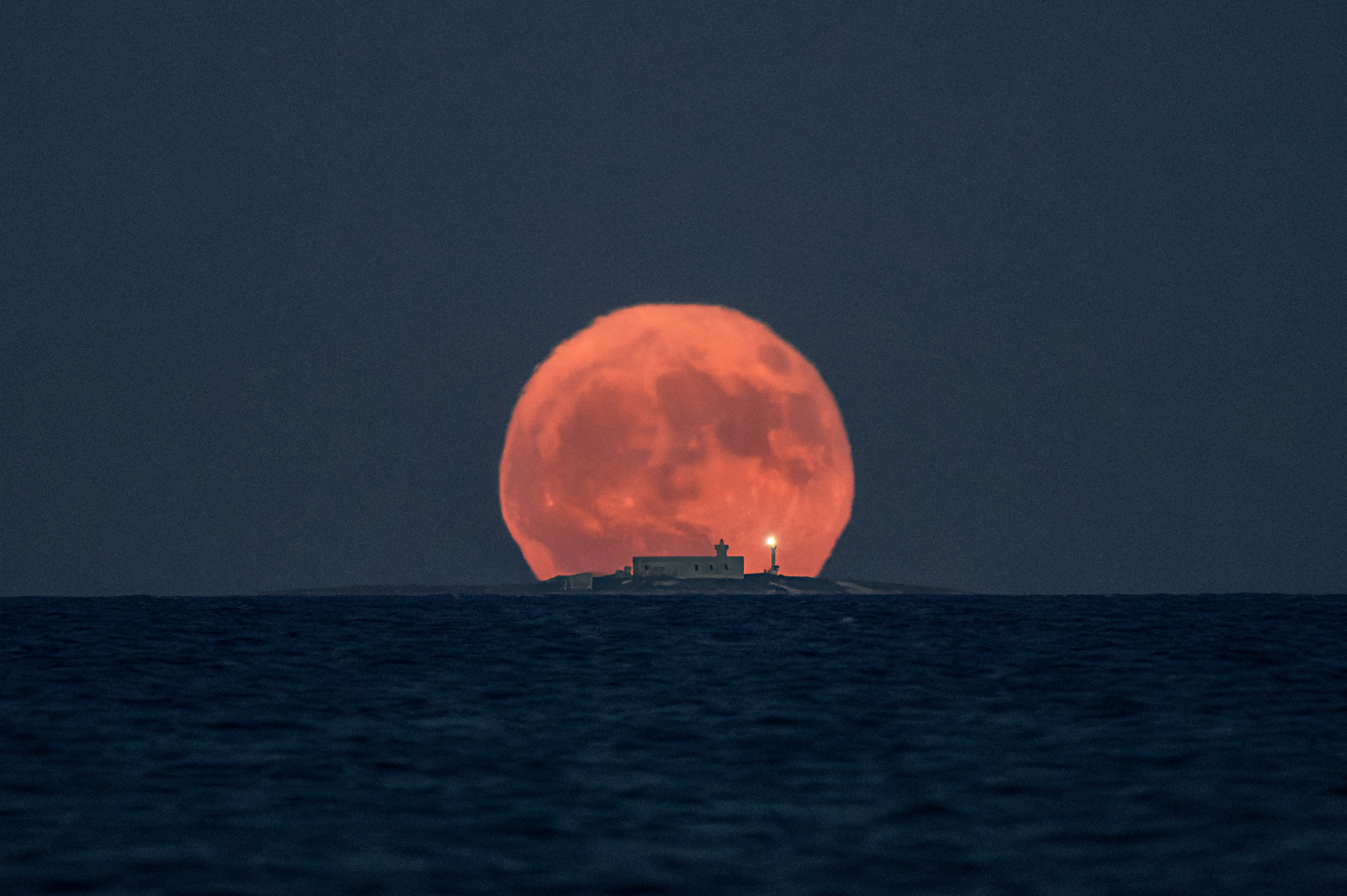 This image taken on July 21, 2024. The Isola delle Correnti lighthouse is located in the southernmost part of Sicily. On July 21, 2024, positioning myself about 10 kilometers away, exactly at the beach of Punta Cirica (Ispica), I took a picture of the full moon behind the lighthouse, as it rose from the horizon. The great distance from the lighthouse and the use of the 600mm telephoto lens contributed to obtaining this surreal scene where the lighthouse seems immersed in the large lunar disk.