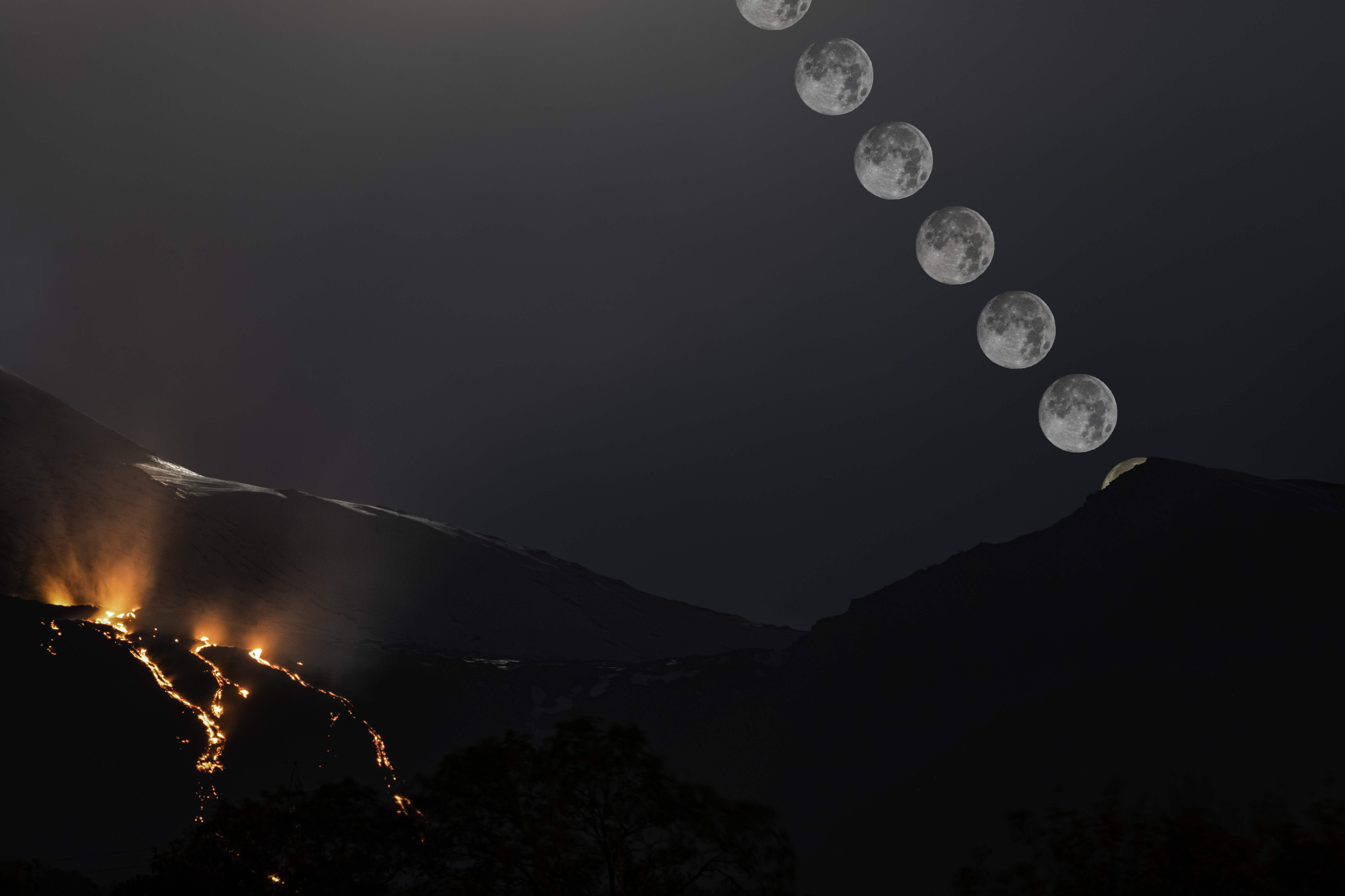 Leserbilder Astronomie: Full Wolf Moonset sequence over Mount Etna