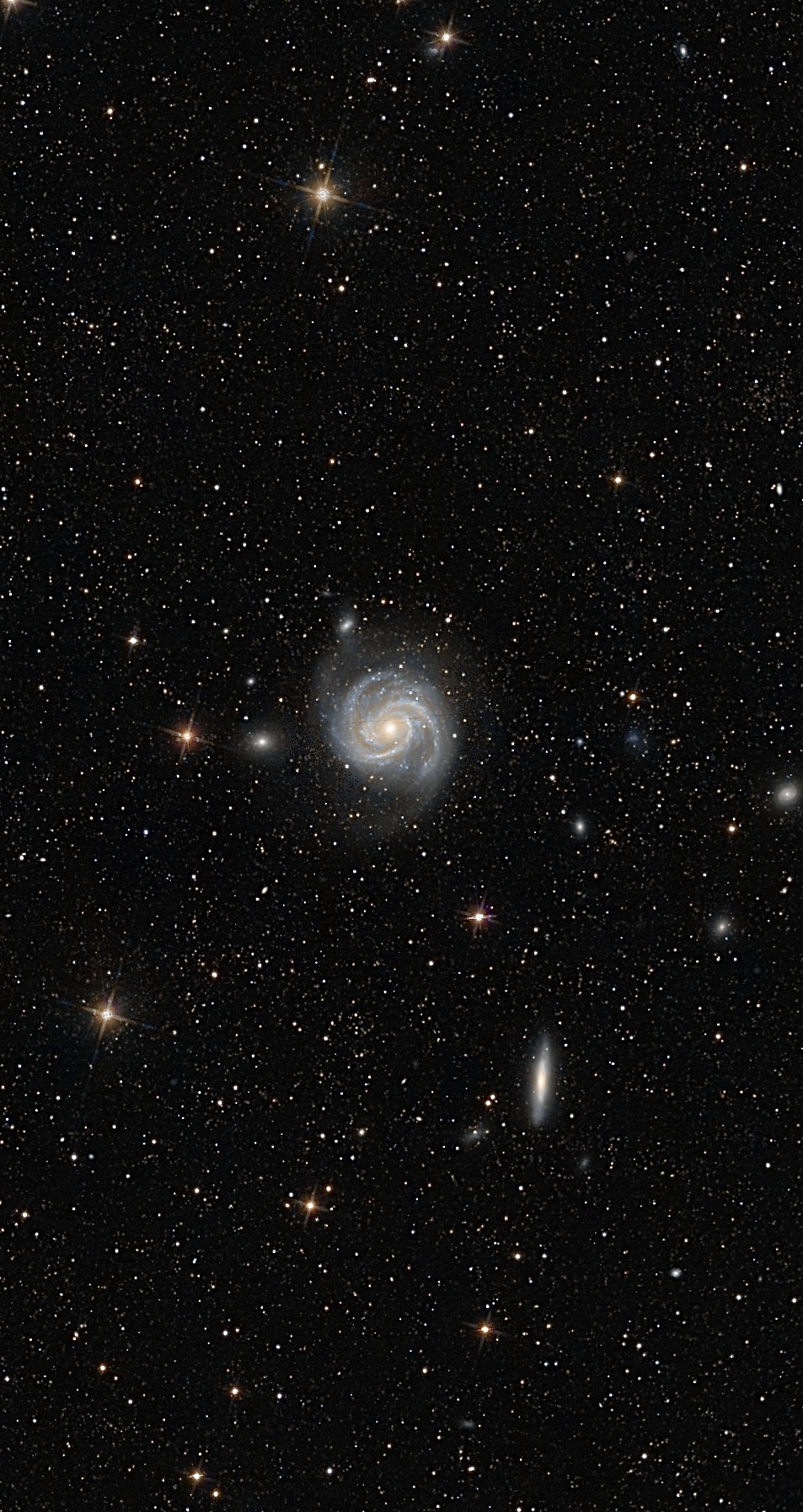 Die Galaxie Messier 100, aufgenommen mit Seestar S 50, bearbeitet mit Siril und Lightroom. Insgesamt 4 Stunden mit 60 Sekunden pro Bild belichtet.